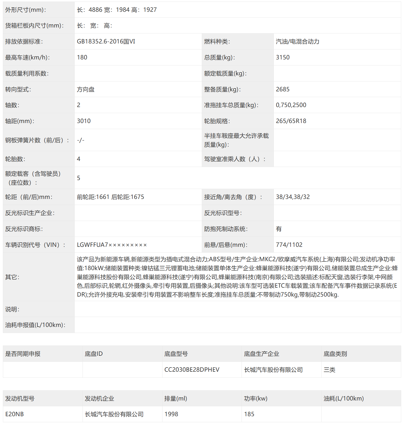 工信部车展405批——坦克300 Hi4-Z