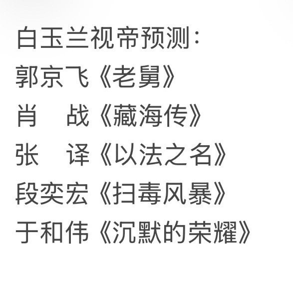 白玉兰预测猜一下视后视帝视后大概是1&2的二选一视帝大概是2&3的二选一《蛮好的