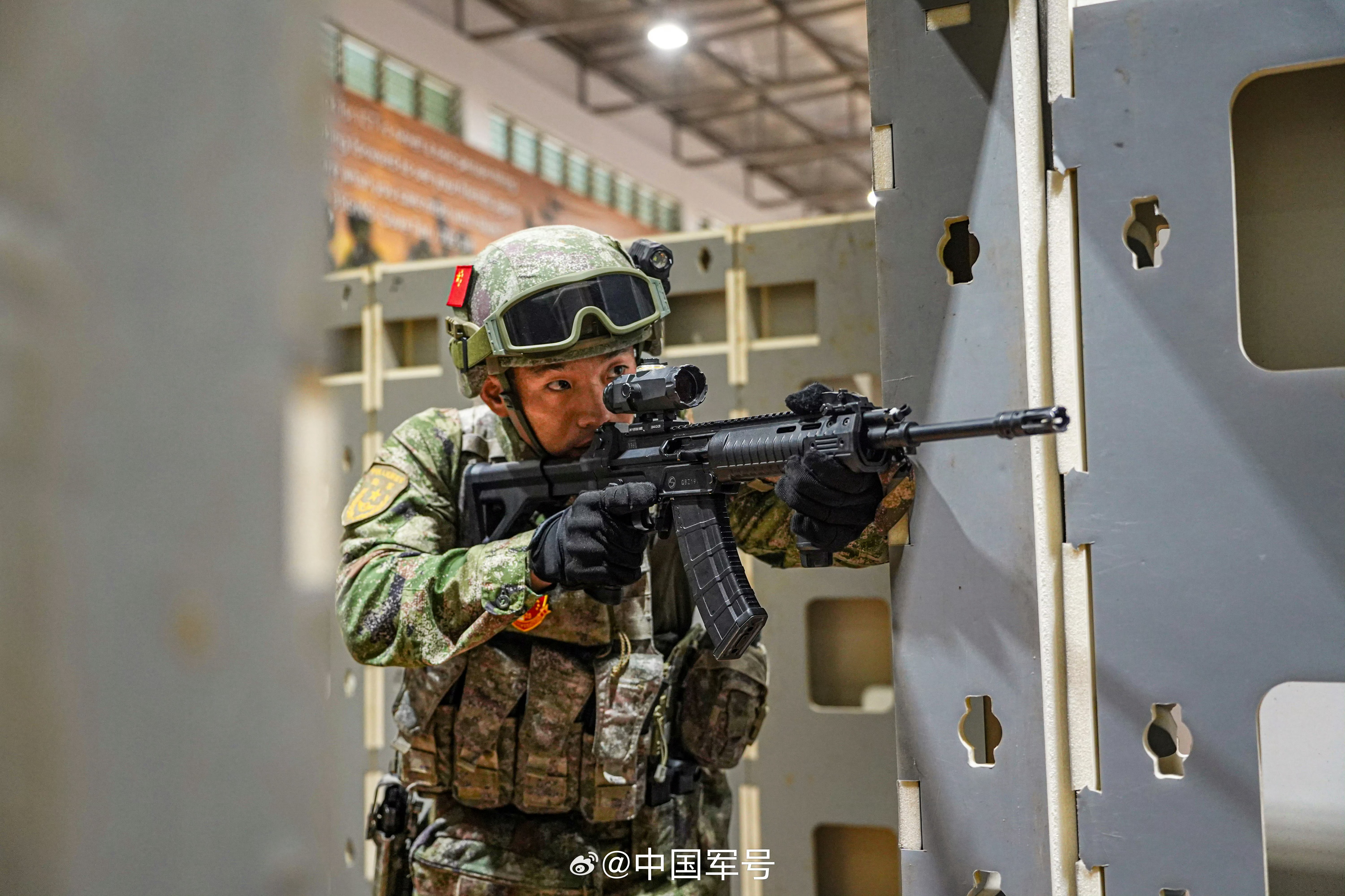 这张陆军战士的照片中,最中间着名战士背了两把枪,一把191突击步枪,一把有着超粗