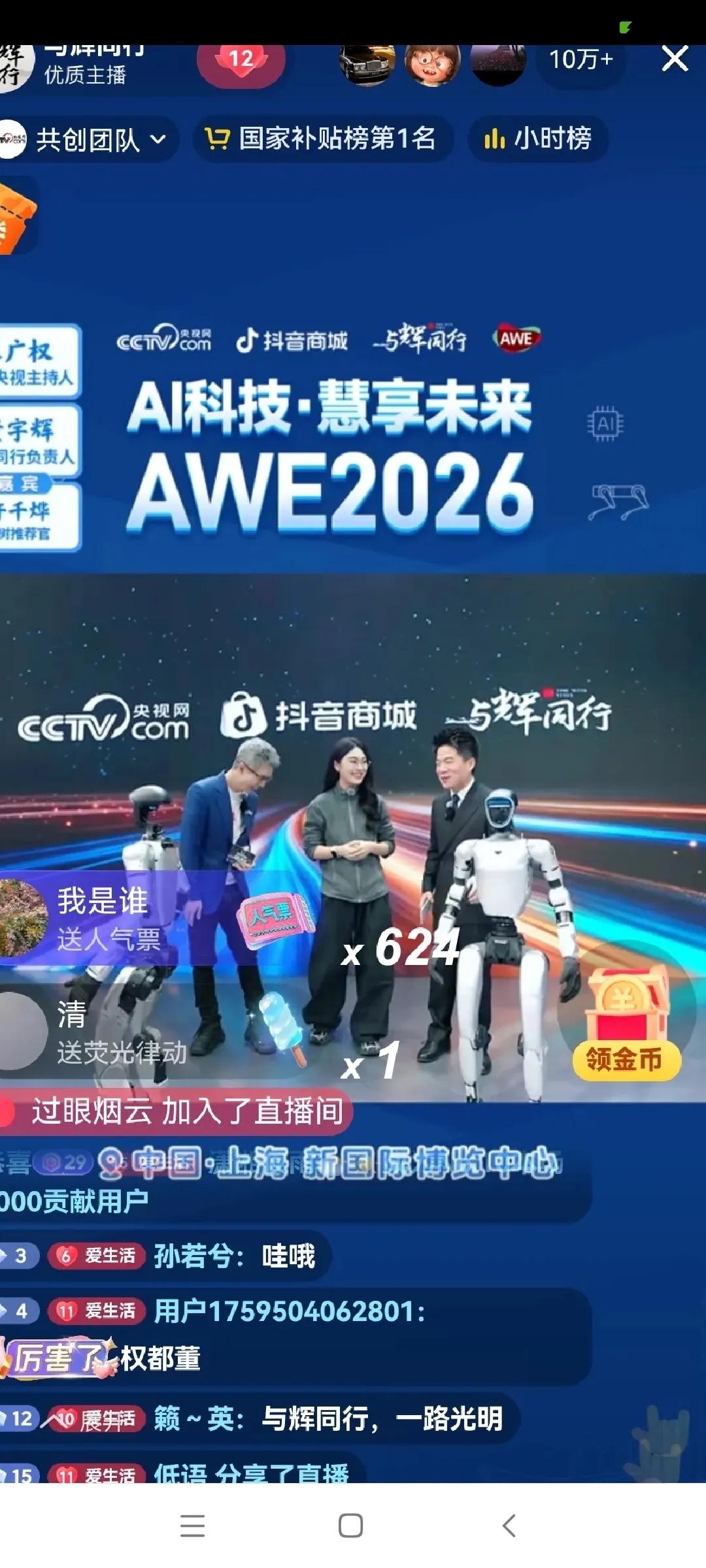 与辉同行AWE的第二天, GMV竟然又过了亿, 真的是太意外了。 展厅里别的直播间兄妹齐上阵, 讲的是唾沫飞溅, 磨盘拉的飞起, 而董宇辉却云淡风轻, 和段子手朱广权一起带我们云游展厅, 和专家一起, 娓娓道来, 给我们讲解“黑科技”。 朱广权的“段子手”这个名号不是盖的, 他一个又一个梗让我们笑个不停。 逛打印机的时候, 朱广权说这墨水宇辉不需要, 因为墨水对于宇辉来说是直接喝的。 机器人“宇树”上台, 他说这是宇辉的弟弟。[大笑][大笑] 宇辉说: “科技再前沿, 最终要服务于人, 而不是取代人。 从老式洗衣机到智能家电, 解放的是时间, 回归的是生活温度……” 人家直播间喊321上链接, 董宇辉把高科技讲解出了人间烟火。 智能家电解放的不仅仅是时间, 有时候还会缓解家庭矛盾。 比如我家买的洗地机, 就减少了我老公的唠叨, 也降低了我和他吵架的频率。 老公爱干净, 但凡看到一点脏的他就不顺眼, 必须立马打扫。 过年我家客人多, 地也容易脏。 他不得不时时刻刻打扫。 但是一边扫又一边唠叨, 这样我烦孩子们也烦。 去年买了洗地机, 呵呵呵。 再就方便了, 哪里脏了洗地机推几下就解决问题, 简单方便, 他也不唠叨了, 家庭氛围也和谐了很多。 今年我打算买个洗碗机, 过年用一下, 解决洗碗洗盘子的麻烦…… 高科技走进百姓家, 满满的人间烟火和温度…… 散会! 董宇辉