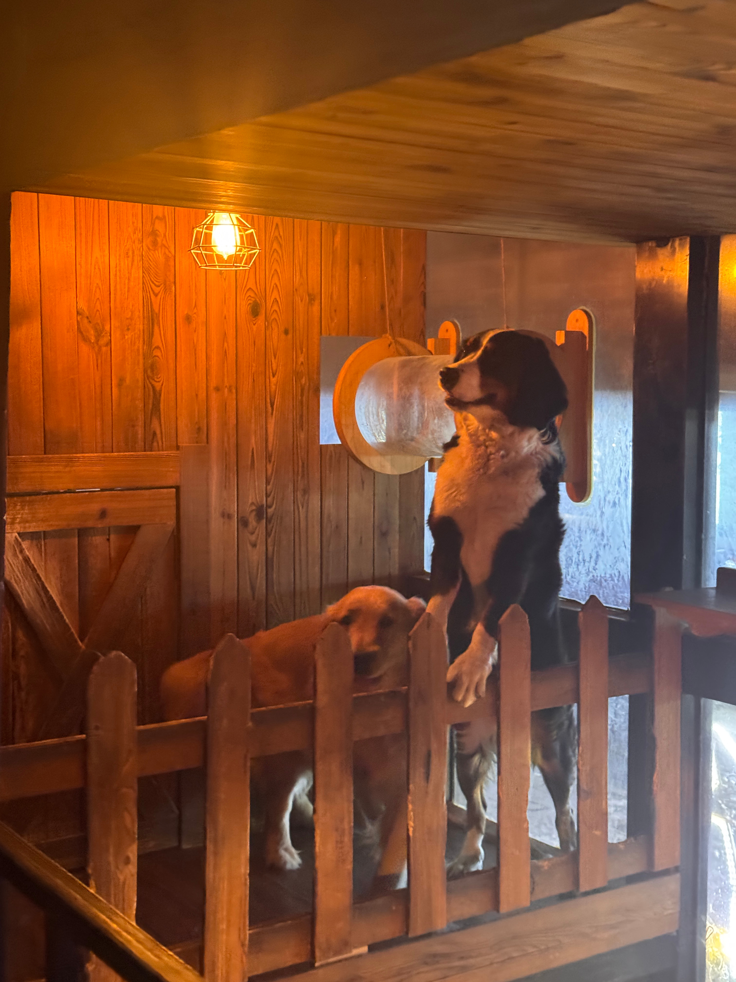 已经在崇礼遇到好几次伯恩山了,昨晚在酒吧还看到了两个探出来的毛茸脑袋。