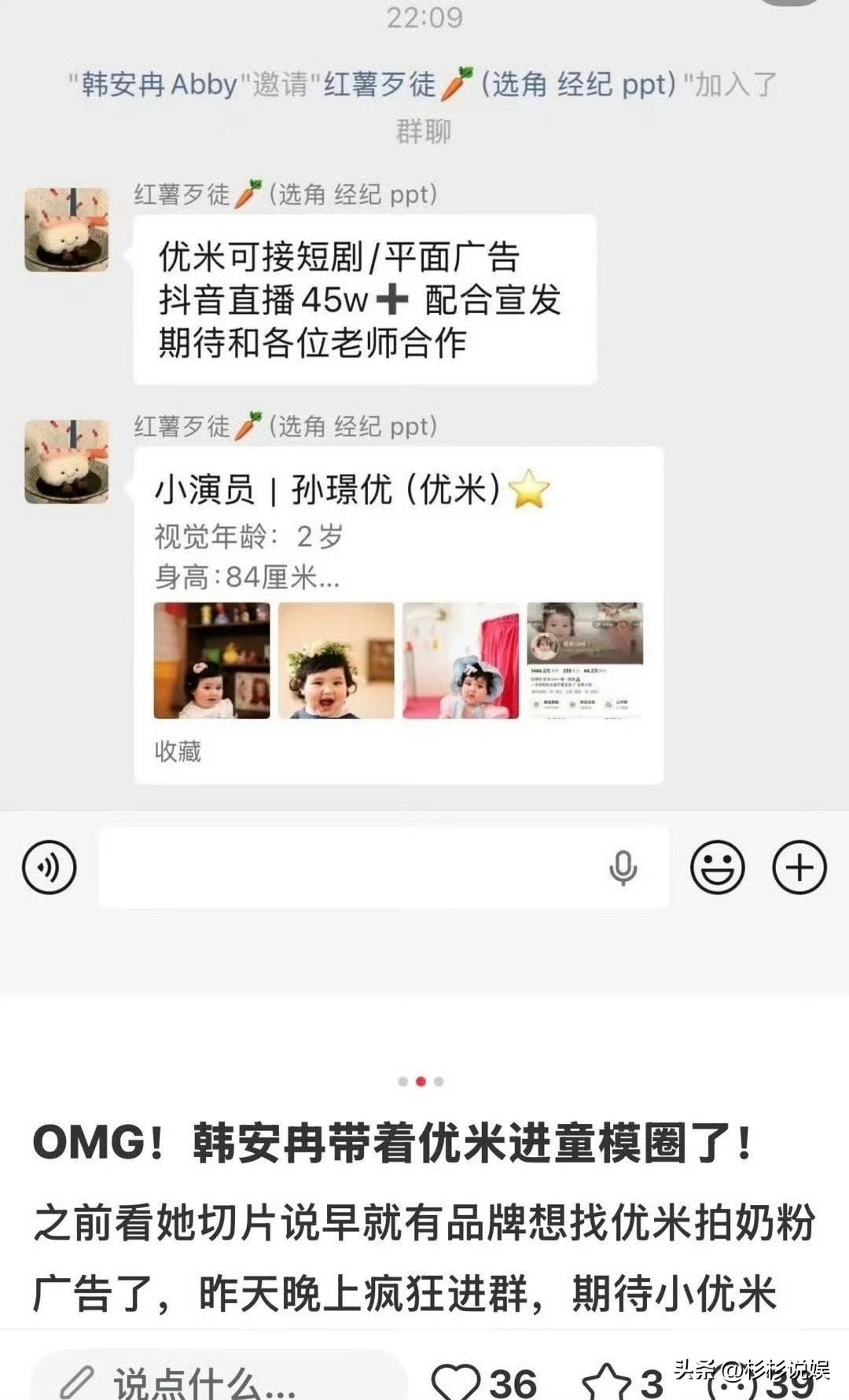 韩安冉又出来了。 结婚4次,离婚4次的她因为前段时间和第四任前夫在网上对骂,双双被封禁,还以为她会消失于网络。 这次出现是因为她要把自己的女儿推出来打广告,自己被平台封禁,女儿可以再接再厉的出来赚钱。 毕竟吃惯了互联网红利的人,怎么可能会静下心来做个普通人,趁女儿优米还小,还是可爱的阶段,赶紧捞钱才是王道。 你会买韩安冉女儿代言的童装吗?