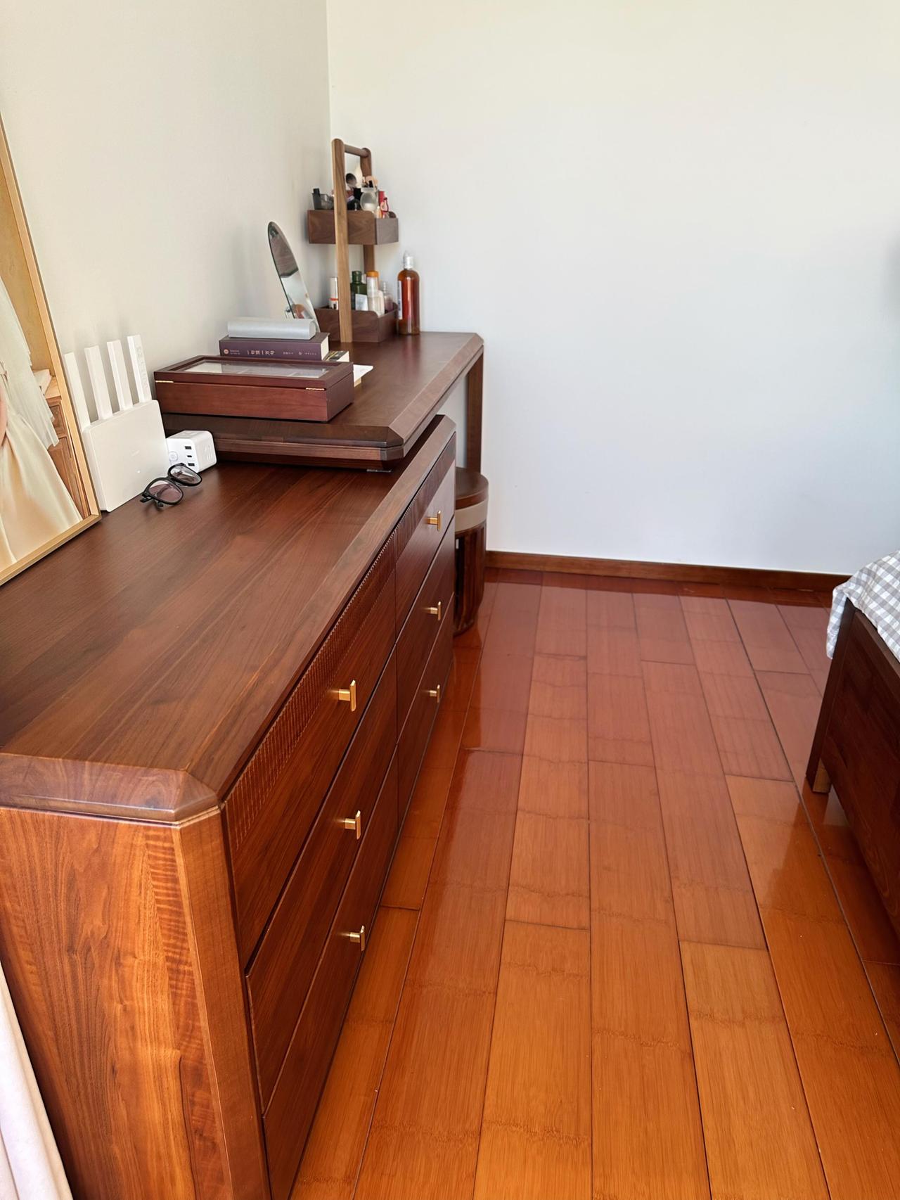 普通人也能拥有干净整洁的家!天津一位女士晒出自己家照片,被她收拾干干净净,看上去非常的温馨又舒适,地面可以当镜子,家具依旧如新,让人好生喜爱! 这期要分享的是屋主 @翠果打烂他的小西瓜 的家,房子位于天津,是90后夫妻自行设计装修的复古风,面积160㎡住宅,虽然装修风格稍显老派,却沉稳经看,也是秉着轻硬装重软装原则,全屋大白墙,通铺木地板,不仅方便打理,还更添温暖之感。 软装选用了胡桃木家具,色调沉稳,与地板的温润质感相得益彰,空间布局并不复杂,关键在于整洁,屋主习惯随手整理,每天给地板吸尘,每周用干布擦拭一遍家具表面,厨房、卫生间始终保持台面无杂物。 整个家没有过于刻意的设计,却处处干净清爽,即便住了很久也不显陈旧,靠的正是平日里的悉心维护,看似普通的打扫习惯,才是打造整洁之家的真正秘诀。 她说: 普通人的家,不需要多好的装修,根据的自己生活习惯,把装修和使用功能结合,这样才能发挥小家的好处。 我是家居买手达人, 分享我眼中有态度的生活, 房子可以是租的, 但生活是自己的, 过好每一天, 才不会辜负以后的自己。 (图片转载自薯博主 @翠果打烂他的小西瓜 ,如有侵权,请联系删除)