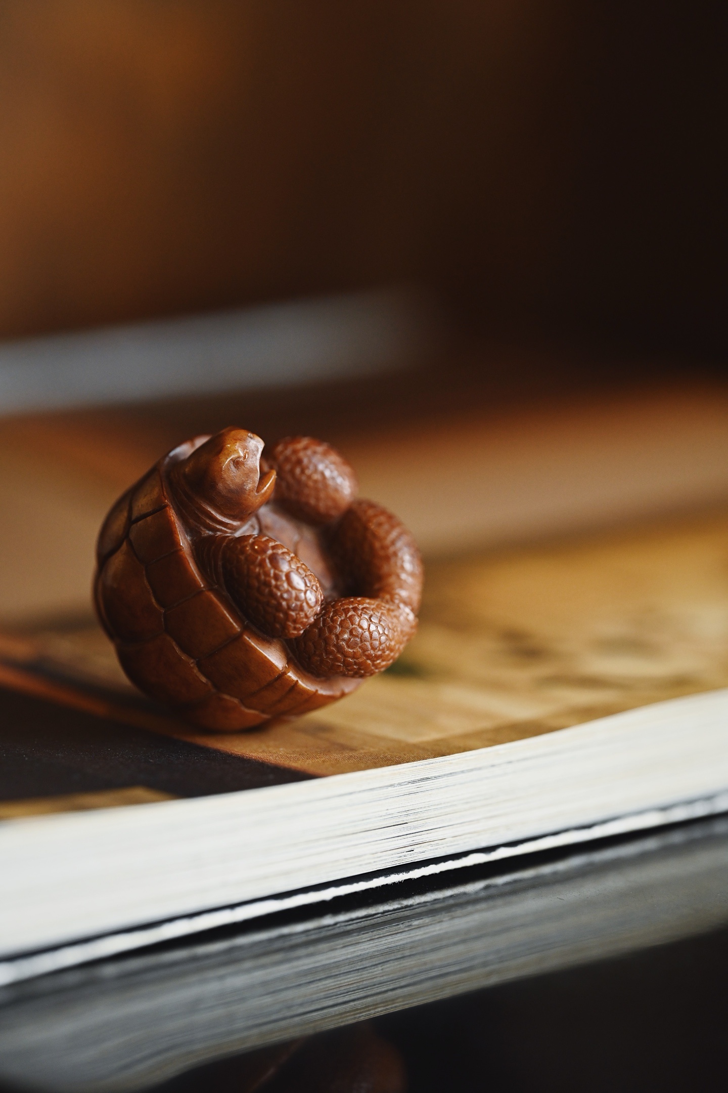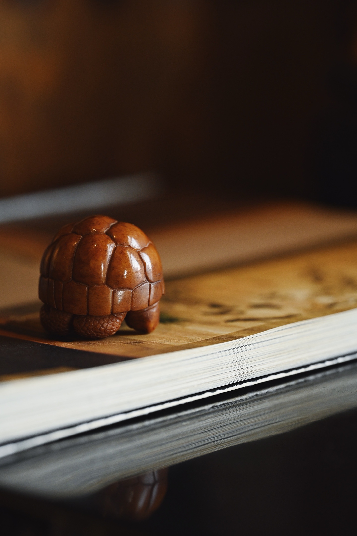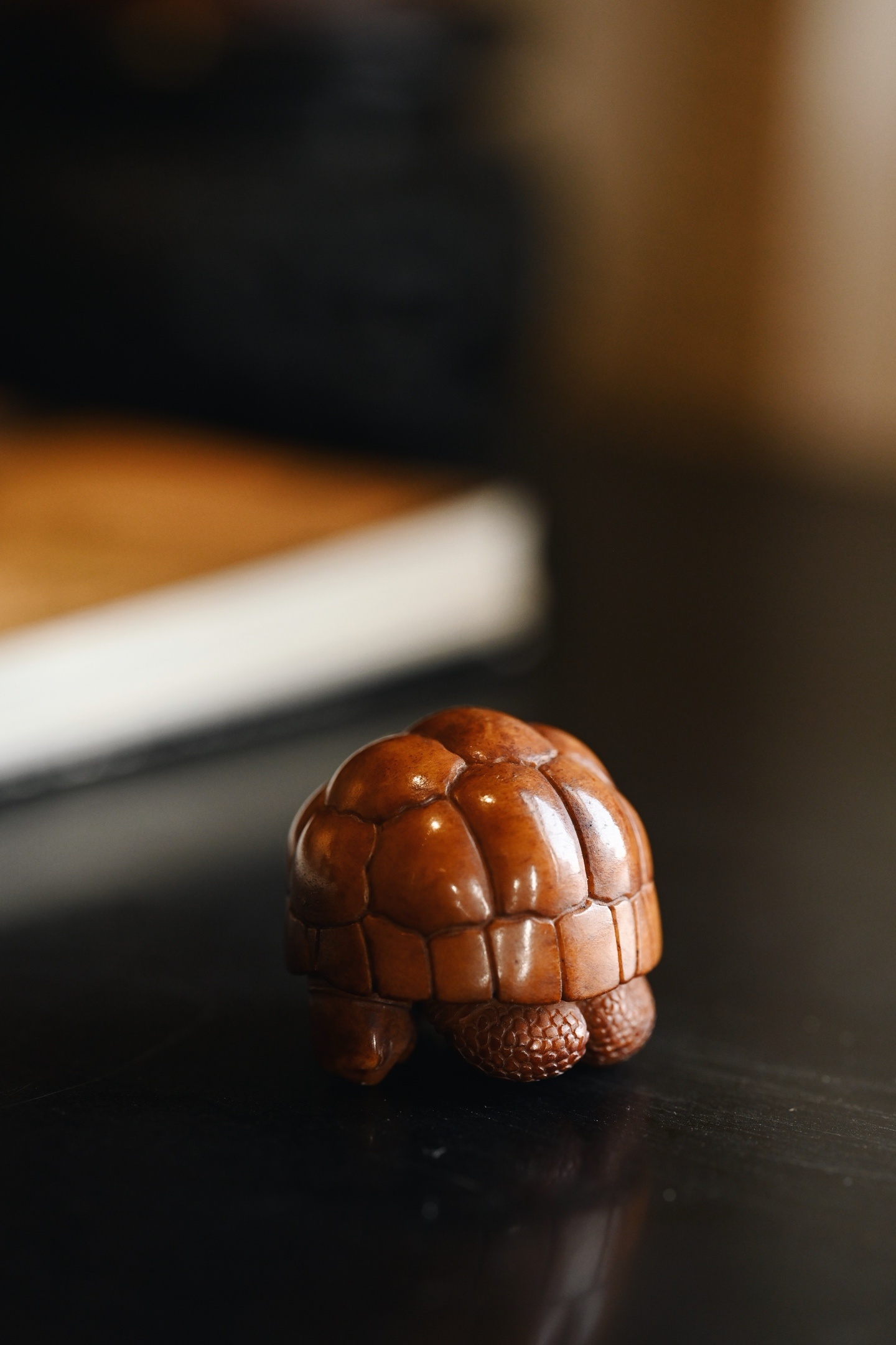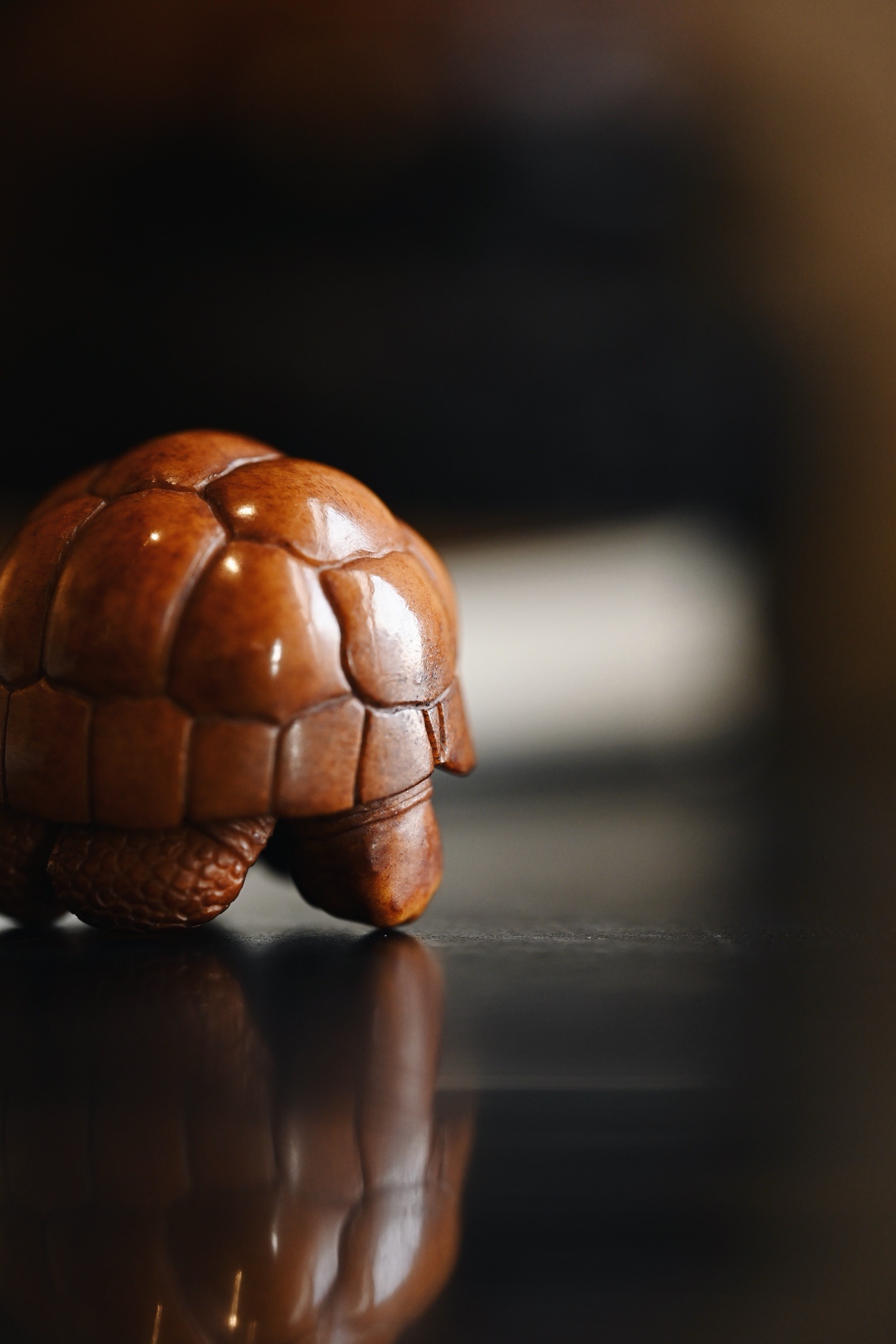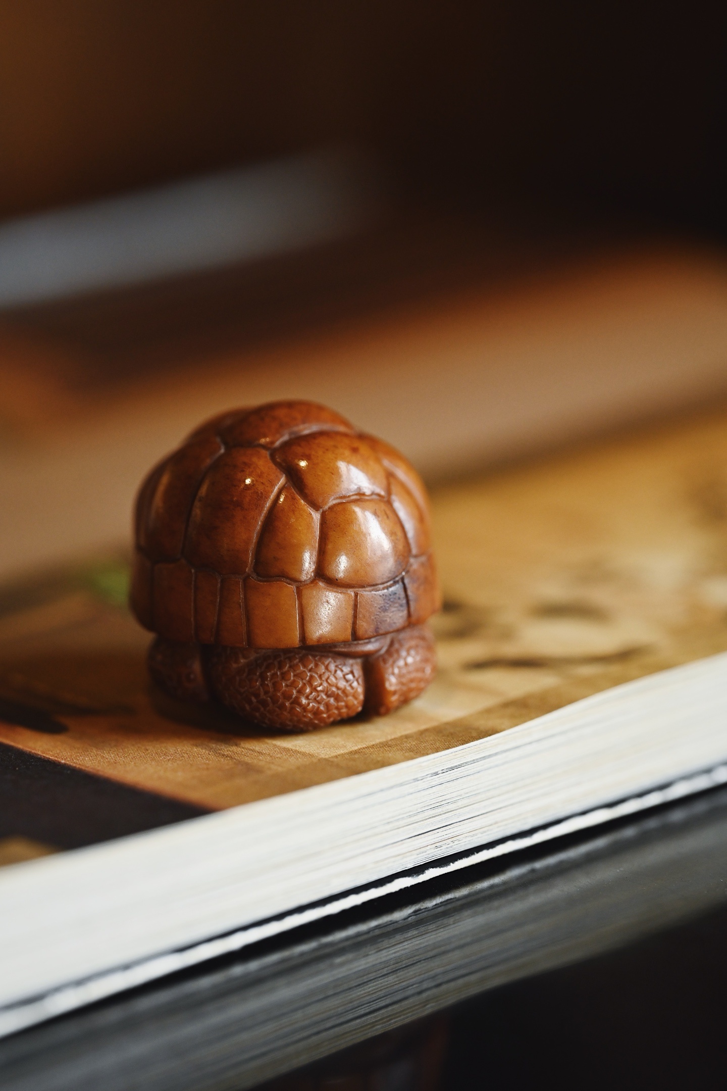 鹿角仿古 | 灵龟 手把件、茶宠琢刻灵龟肌理精微,神态生动自然,纹理分毫毕现,惟