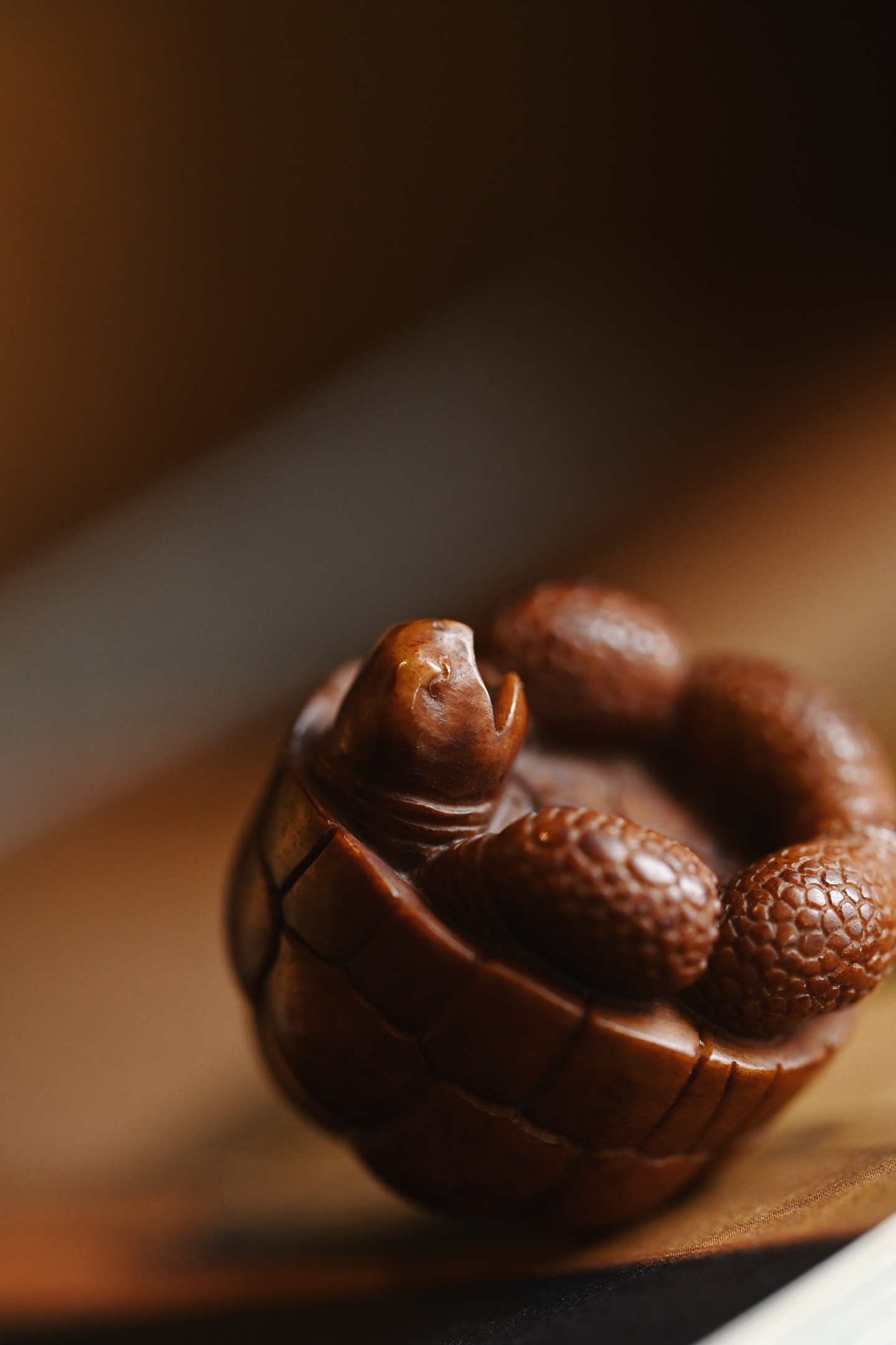 琢刻灵龟肌理精微,神态生动自然,纹理分毫毕现,惟妙惟肖,极为传神。