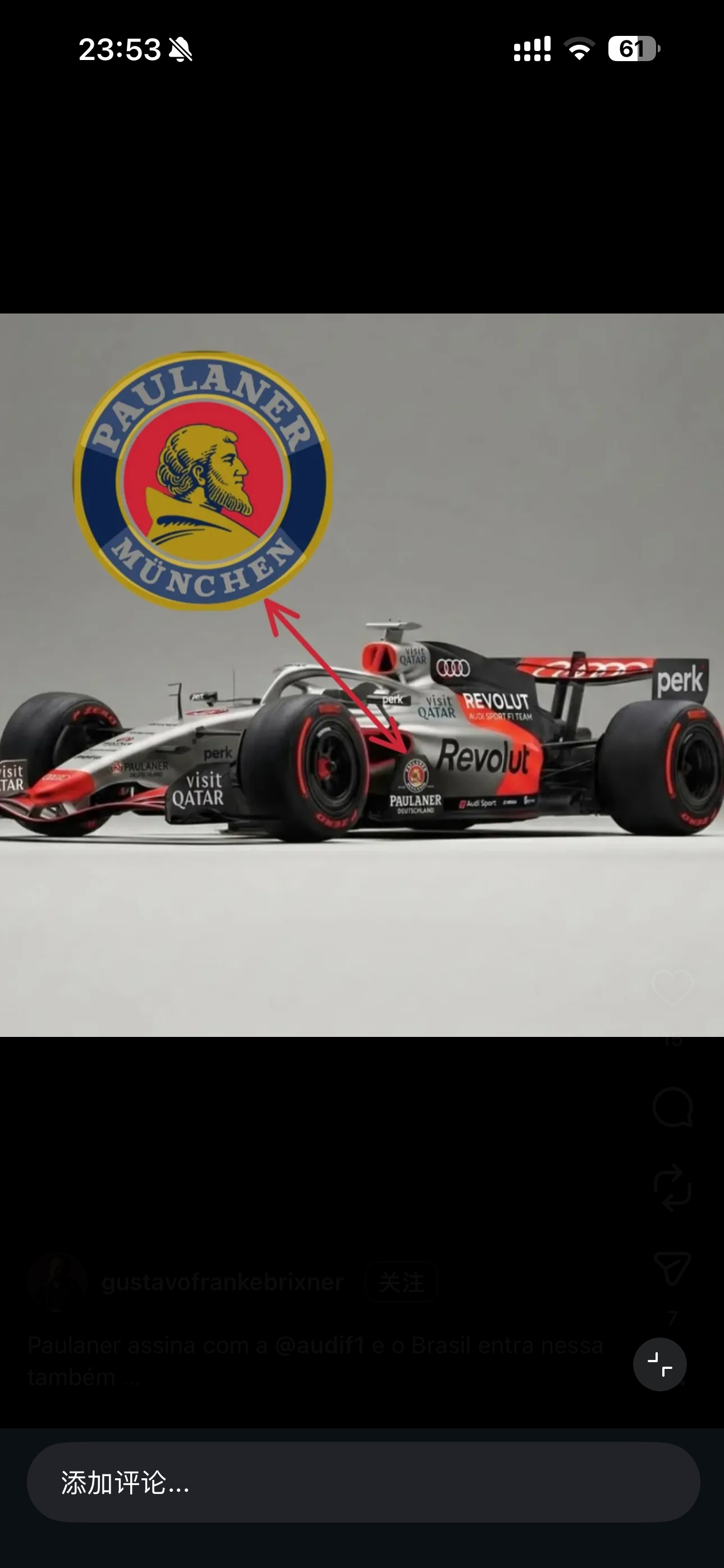 Paulaner 啤酒 也是奥迪赞助商 !很低调李楠说道李楠说道F1奥迪