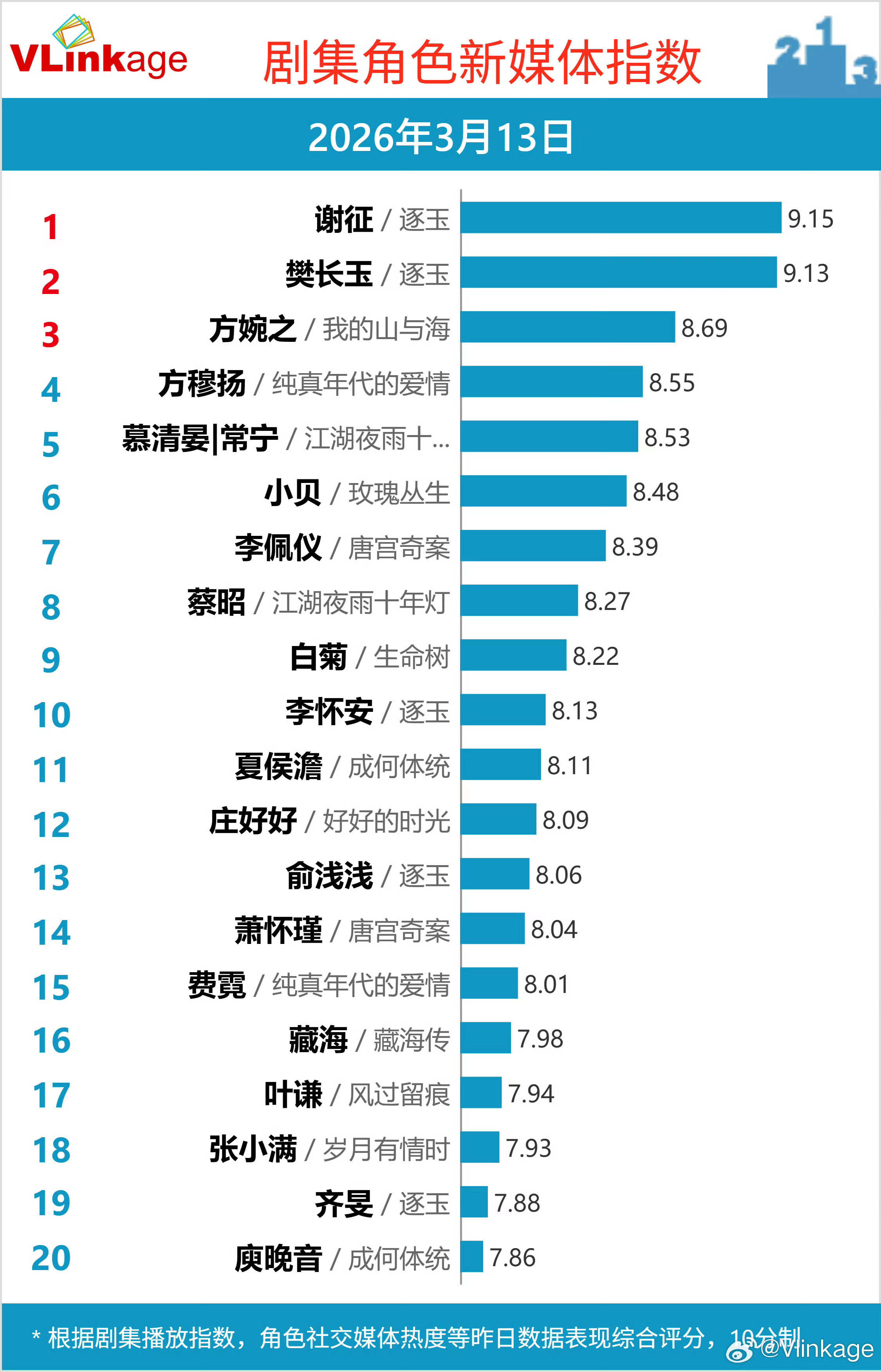 V榜角色方婉之冲上第三《我的山与海》V榜播放指数第一