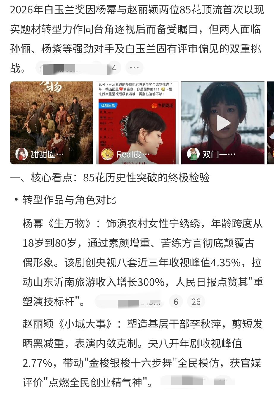 赵丽颖杨幂因为白玉兰视后上热搜了。 坦白讲,今年的话,明显杨幂比赵丽颖更有竞争力一些。 小城大事无论剧的热度还是口碑,都比生万物差了一大截。 赵丽颖饰演的李秋萍,无论是角色本身的热度,还是剧中演技,都没有任何的突破。 杨幂饰演的宁绣绣,前期演技确实有些尬,但后半段确实🈶进步。 大结局那段独白,我个人觉得演得还不错。 她团队在营销这块,也不如赵丽颖团队。 人家当初拍电影,靠着一张剧照刷屏式营销,最终给自己捧回个最佳女配。 创作训练营2期开营啦