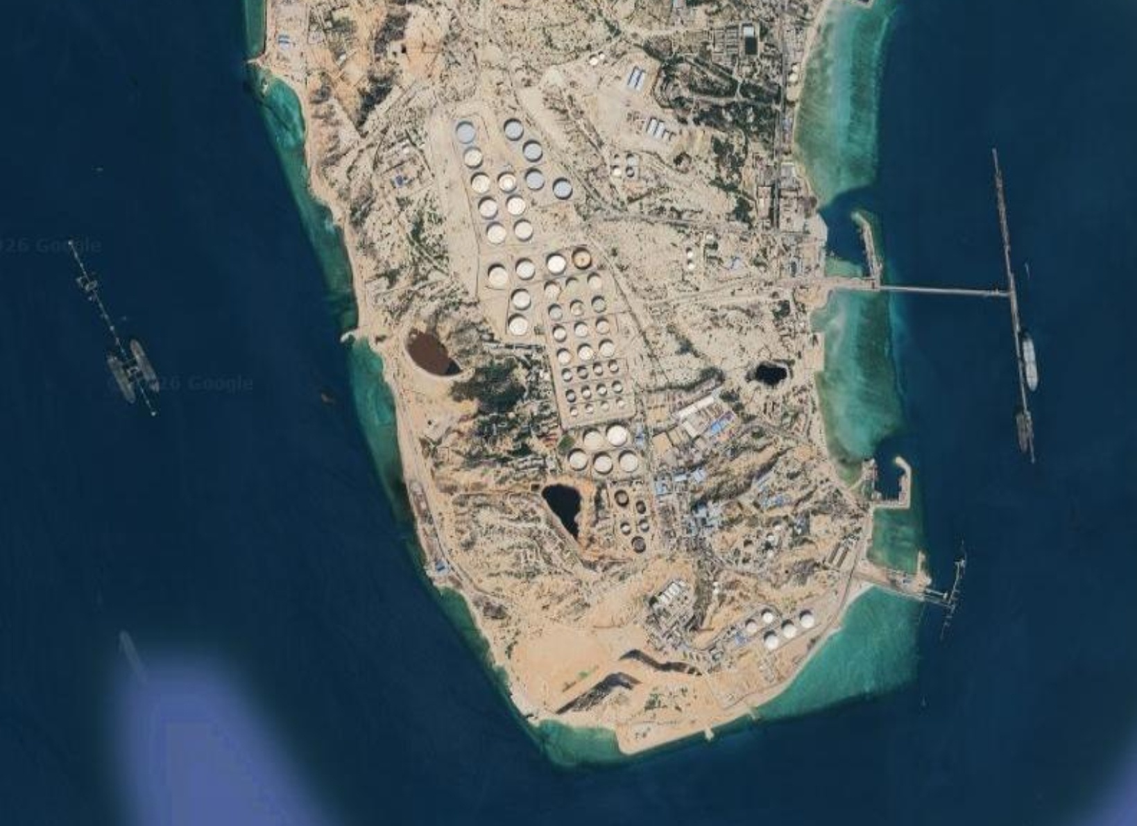 哈尔克岛占地面积49平方公里,上有14个码头泊位,伊朗约90%的石油出口通过该岛,出口量约150万桶/日,储油能力约2800万桶。