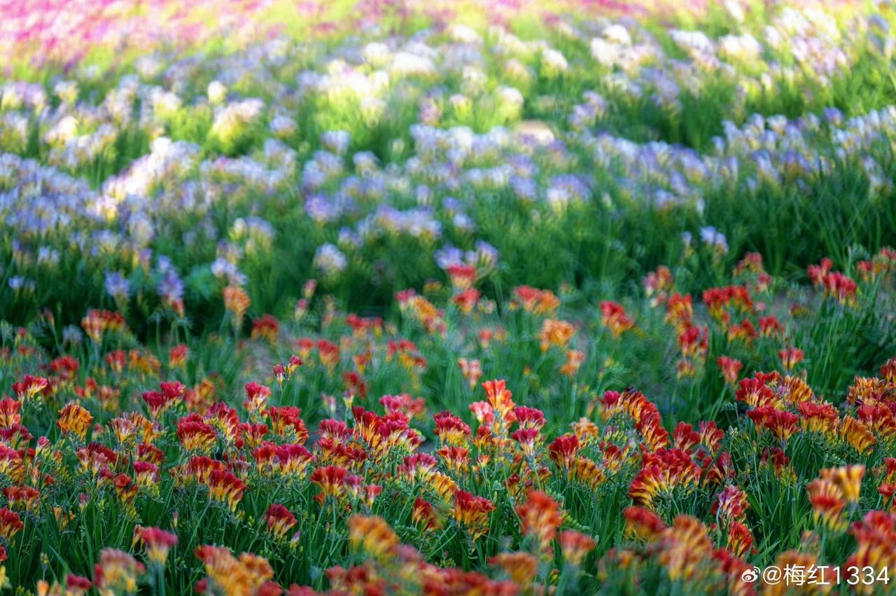 【福州·花海公园】 福州人过春天的仪式感 斑斓的小苍兰,温柔的紫罗兰……花海公园美若一幅彩色油画,洋溢着春日的鲜活与美好。 Via. @梅红1334