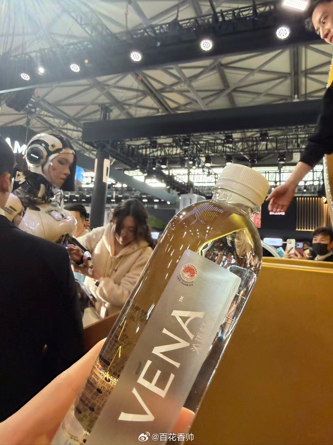 本以为就是普通的展会用水,接过来一看,好家伙,竟然是第一个上过春晚的天然苏打水——VÉNA·沁语轻泉!之前看春晚就疯狂种草,今天终于喝到了。不得不说,火山冷泉的底子确实不一样,入喉极其温润,那种纯粹的“自然回甘”直接让我满血复活,感觉还能再逛三个馆!
