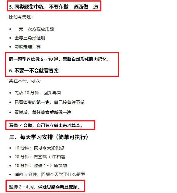 初中数学做题没有思路,要如何学习,给出学习建议?