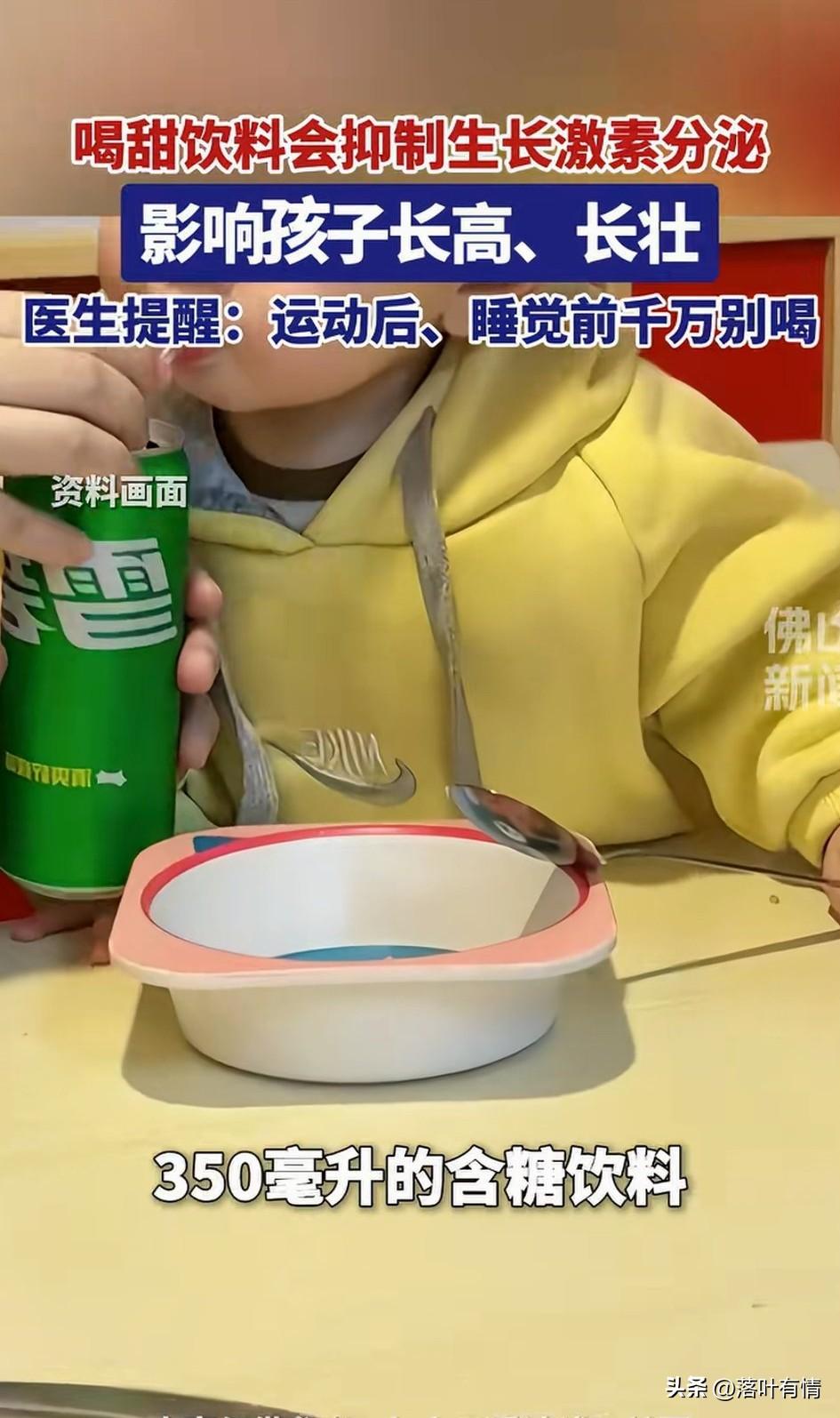 含糖饮料居然对孩子伤害这么大, 医院的医生告诉大家, 如果你的孩子在运动后,睡觉前, 喝了一杯350ml的含糖饮料, 那么就会抑制孩子的生长激素分泌1.5~2个小时,时间长了就会影响孩子的身高,平时小孩都喜欢喝甜的, 大人不让喝就偷着喝, 没想到居然有这么大的危害, 我们现在管孩子, 感觉孩子非常叛逆, 仿佛想到了自己的小时候, 自己也是这样,不听父母的话, 还真是万道轮回, 千万不要让自己的孩子再喝含糖饮料了,真的影响孩子长高,长壮, 这个医生说的是大实话, 大家觉得怎样才能管住小孩呢? 甜饮料致癌 饮料安全隐患 饮料混着喝后果 生活含糖量
