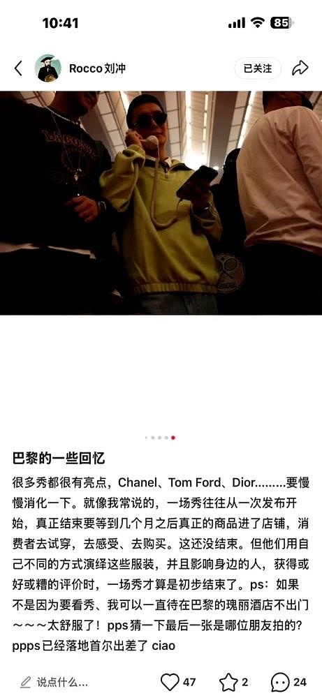 巴黎时装周,王一博和VOGUE主编刘冲,这俩活宝又整新活儿了! 就那段东北话小品视频,你肯定刷到了!冲哥浮夸凑近,王一博直接飙出“诶呀妈呀这演的!下次你站远点儿,别杵我跟前儿”,冲哥特配合后退。这段视频,短时间转发直接冲上十万。 其实他俩这默契不是一天两天了。去年就开启互换采访、王一博反拍冲哥的欢乐模式。这次在罗意威、拉科斯特秀场,冲哥小红书追拍王一博拍日常,还有那“电话连续剧”找人段子,简直是连续剧。 这波操作,网友们都看乐了,说他俩像排练好的小品。王一博那句“诶呀妈呀”被辽宁网友夸自然丝滑,没一点塑料感,全靠早期积累。 这种活宝搭档,谁看了不羡慕?
