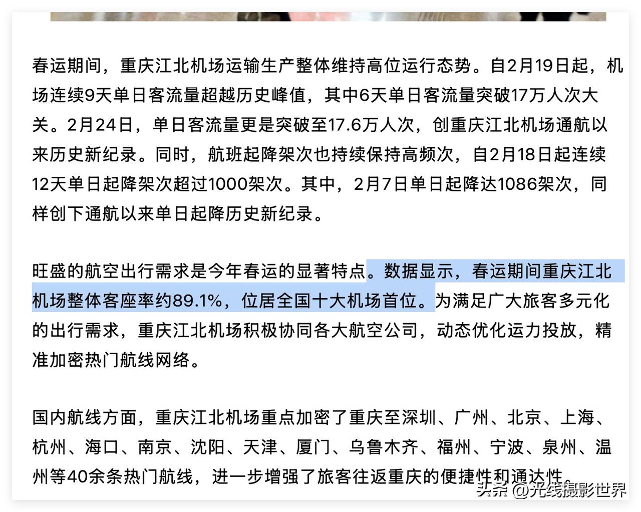 尽管重庆新机场的正式开工日期渐趋模糊,但是,“2026春运|重庆江北机场春运收官 多项指标创新高”,令人振奋,成渝经济圈,川渝两地,今年春运,无论空运还是铁路运输,全都火爆极了! “自2月19日起,机场连续9天单日客流量超越历史峰值,其中6天单日客流量突破17万人次大关。2月24日,单日客流量更是突破至17.6万人次,创重庆江北机场通航以来历史新纪录。” “。数据显示,春运期间重庆江北机场整体客座率约89.1%,位居全国十大机场首位。” …… 总体来说,重庆,是完全有潜力提前规划和建设新机场、第二国际机场! 只是,2026年春天,几个十五五规划文件里面,好像并没有准确提到十五五期间重庆新机场开工的字眼…… 不过,说实话,随着东南亚进一步向我们靠拢,随着中国通往世界第一强国的加速……世界格局在未来10年可能会得到极大的改写! 世界形势的发展速度,可能远超我们当今的任何想象! 成渝经济圈,作为面向东南亚和南亚的国际交通枢纽,重庆新机场,肯定是铁板钉钉的要建设的! 所以,2026年春天在西亚发生的这些事情……可能都会更加加速东南亚对于我们的向心力! 2026年,广西平陆运河的建成,也会大大加速陆海新通道的全面发展,重庆,成都,成渝经济圈,将会迎来新一轮快速发展! 综合来说,成渝经济圈的发展潜力,不可估量! 成渝经济圈,2035年对于东南亚的吸引力,可能不是2026年春天的我们所可以想象得到的!