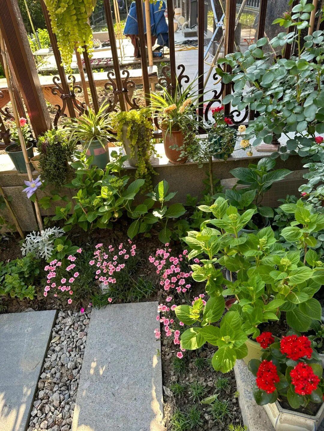 繁花似锦的小院,绿意盎然的植物,宛如世外桃源。