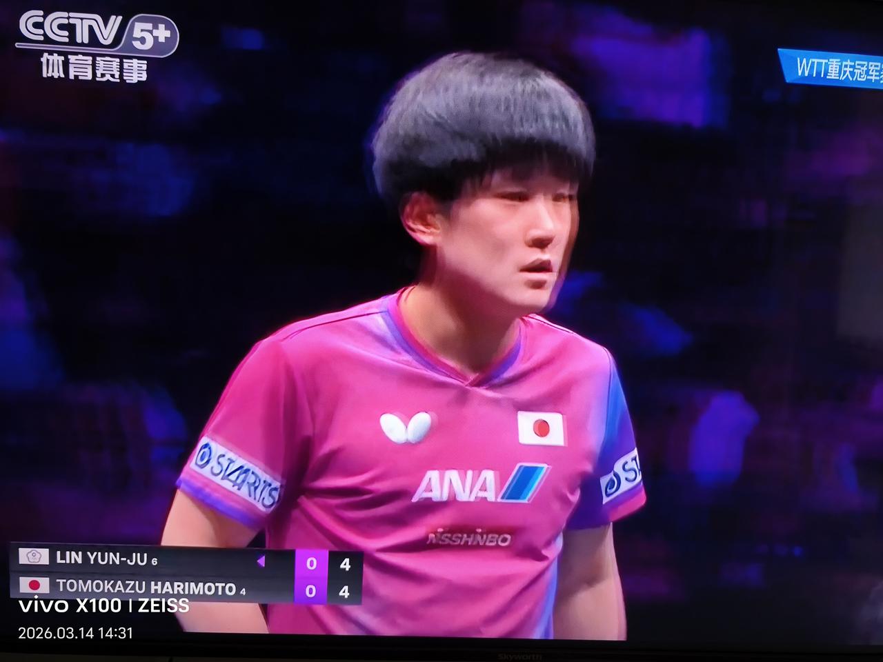 人如淡菊[笑哭], 林昀儒沉默无声轻松扳回一局[赞]! 前两局张本智和🇯🇵11-8,5-11被林昀儒追上来了! 第一局台林本来8-6领先的,最后还是被干劲更足的张本拿走了。第二局好运和好球感好像都給林昀儒。 历史交手记录上,2025年以来两人有四次交手,各胜两次,距今最近的一次交手是在2026多哈冠军赛半决赛上,林昀儒4-3获胜。 林昀儒本赛季状态出色,刚换了合适的球拍海绵,用起来甚是顺手。今天看上去他也比前一段壮实了。 这是2026WTT冠军赛重庆站男单1/4决赛, 目前第三局张本智和4-3领先!