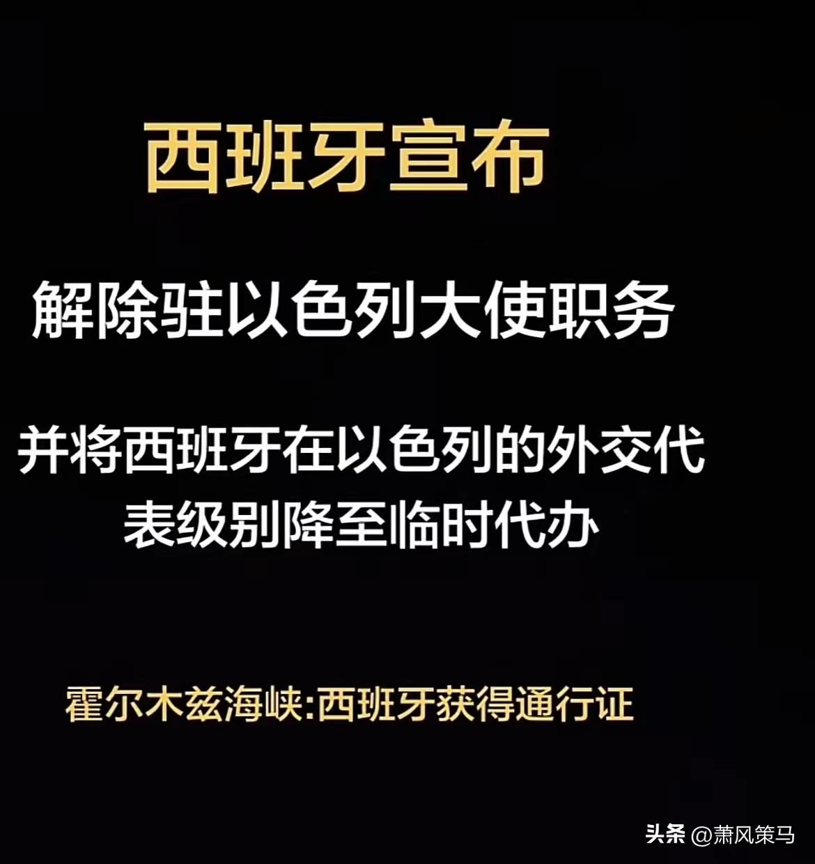 不出意外,西班牙这波操作应该可以换一张霍尔木兹海峡的通行证。 伊朗这招阳谋太绝,把能源咽喉当成了投名状。西班牙果断和以色列降级断交,反手就能拿到自由通行的资格。这哪里是简单的外交置换,分明是把利益摆在了第一位。 全球油轮都在海峡外堵着发愁,人家西班牙轻轻松松就拿到了通关权限。在能源命门面前,所谓的盟友面子说放就放。西班牙这波不仅保住了自家能源通道,还带了个好头,怕是要有一堆国家有样学样了。