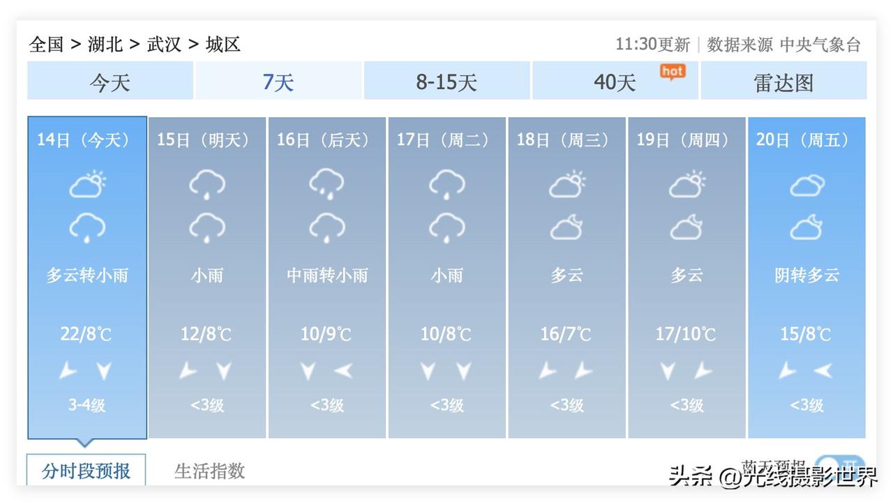 超强倒春寒真的要来啦!湖北省武汉市,虽然3月14日最高气温22度,但是,3月15日,星期天,武汉小雨,气温暴跌至8-12度……3月16日,星期一,武汉中雨转小雨,气温跌至9-10度……断崖式大降温,气温腰斩,强冷空气,即将杀到武汉市! 可是,最近,武汉大学的樱花已经预约开放,哎…… 而且,下周末,3月21日星期六和3月22日星期天,武汉连续两天都是下雨……这对于想要赏花的武汉白领和上班族来说,真的是特别不友好啊! 中央气象台的最新武汉天气预报……真的是一言难尽…… 武汉人,真的好难啊! 3月15日到17日,武汉降雨降温,武汉人,又要穿上羽绒服和秋衣秋裤……花花们遭遇倒春寒的雨打风吹,真的是好可怜。