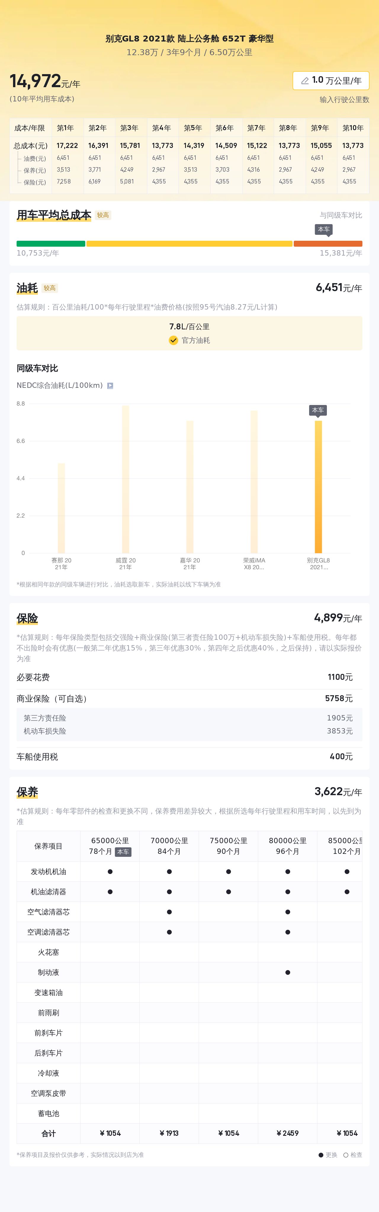 关于用车成本方面,根据懂车帝官方的大数据分析,这辆别克GL8 2021款陆上公务舱652T豪华型的10年平均用车成本大约在15186元/年。