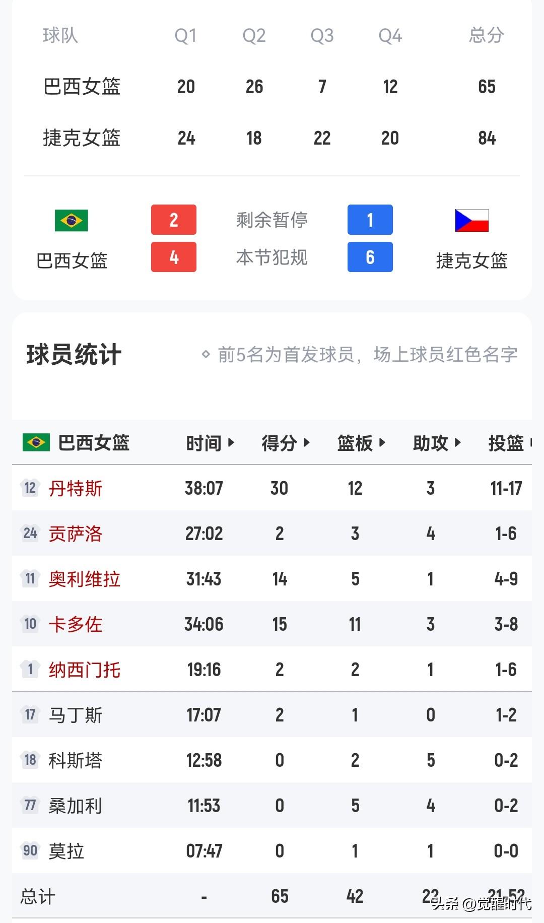 女篮捷克84-65巴西启示 现代篮球理念 核心还是一个均衡 内外 攻防 身高 体能 心理 球感 这里说的似乎有点多 其实确实如此 按上半场是巴西的节奏 虽然卡多佐强调不能分 却能分球 这样内外配合就有了 但是下半场 捷克又加强了节奏速度和强度 这致使阵容深度有限的巴西非常不适应 跟不上节奏了 这里第三节的反转 就是整个篮球理念的经典提现 捷克阵容均衡 对篮球球感很好 都能投 多数基本也都能突 巴西被拖垮了 其实巴西犯得致命错误就是 外线没有火力 这样很难赢 甚至很难打疼对手 这里也是给我们最大的启示 一定不能受困于内线 灵活应对 而且一定要给予外线足够的活力 这是战略层面的 现在看来 热身赛的捷克 明显是有所保留的 我们小组赛最后战捷克 还是有很大的考验 当然只要门 做好知己知彼 胜利机会还是大概率 首先防守大胆外扩 防守三分为第一位 三分是致命的 可惜选择性给这中距离 其次篮下机会尽全力防守 其次进攻 就是果断 有机会果断进攻 重要的三点 一 三分坚决投 二 快攻坚决打 三 内线造杀伤 如此攻防 只要努力做好 胜负自然