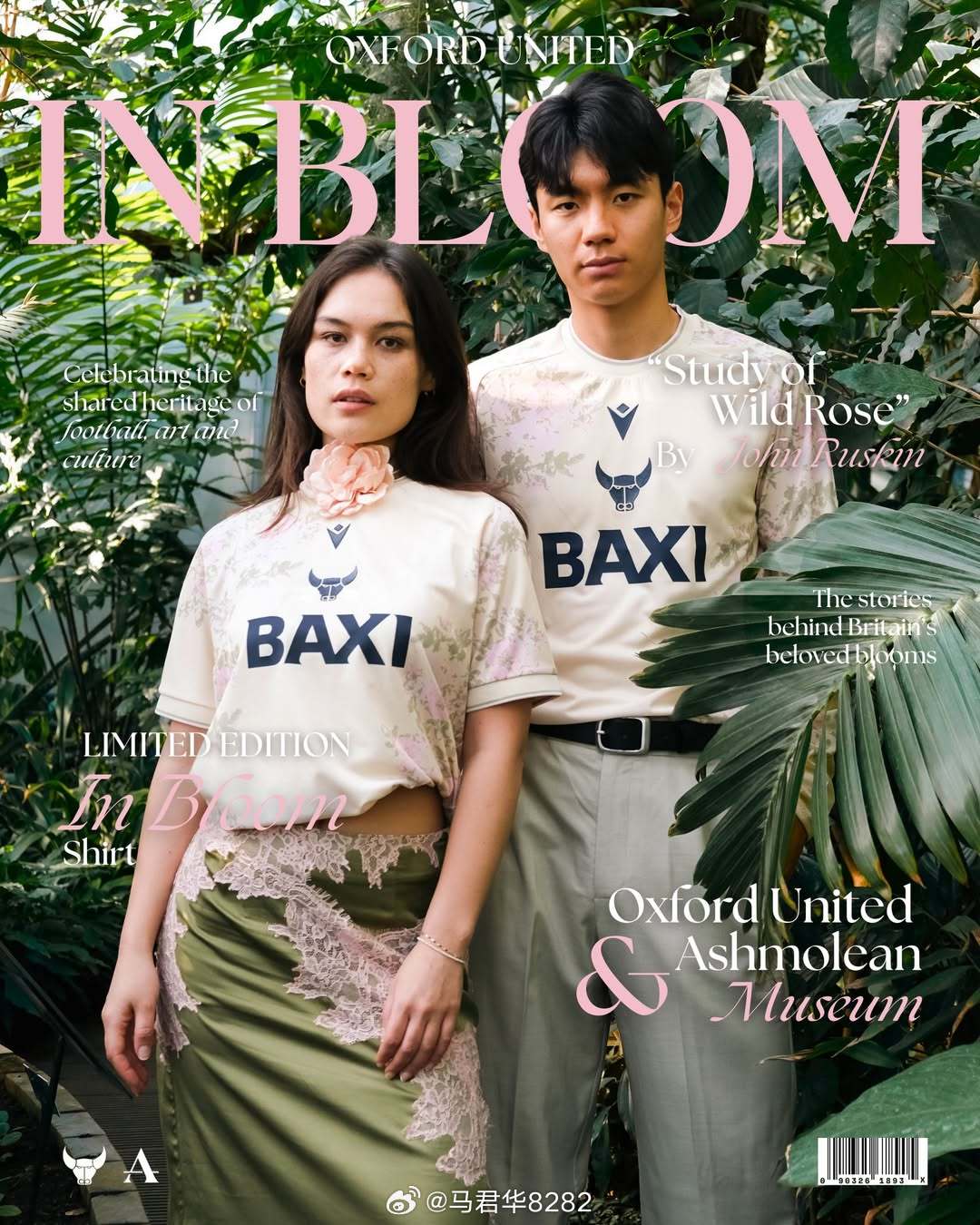 “In Bloom(花开)”特别版球衣,设计灵感来自 Study of Wild Rose,这是英国艺术家 John Ruskin 的一幅野玫瑰研究画作。牛津联与 Ashmolean Museum(阿什莫林博物馆)合作设计完成。