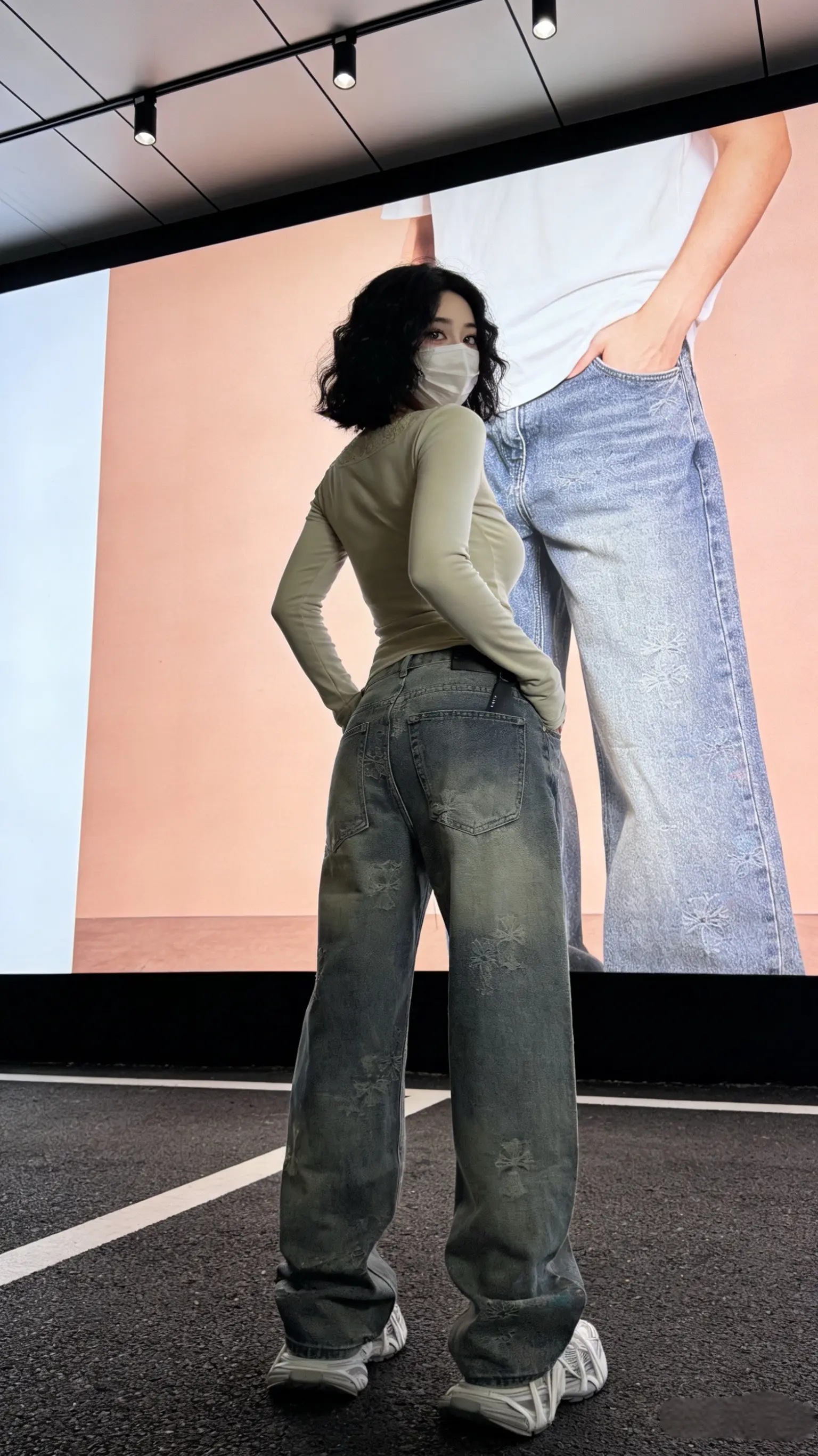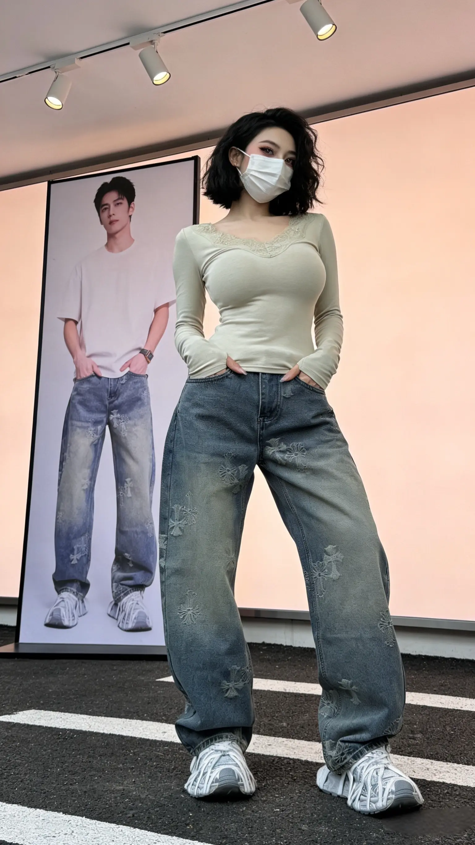 春夏款刺绣克罗男士直筒牛仔裤休闲宽松复古做旧设计感做旧水洗