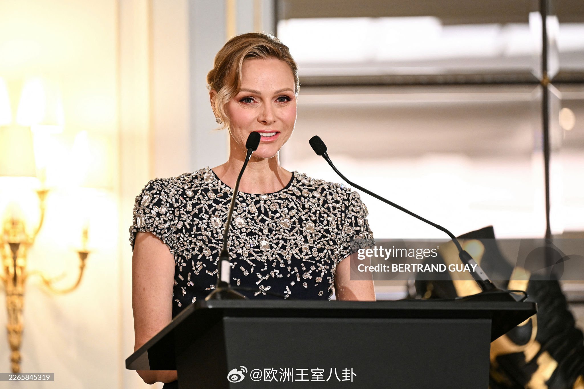 3.13 摩纳哥亲王阿尔贝二世和王妃夏琳出席慈善晚宴,米兰冬奥后夏琳不声不响又歇了大半个月她礼服来自Oscar de la Renta,少了个手包