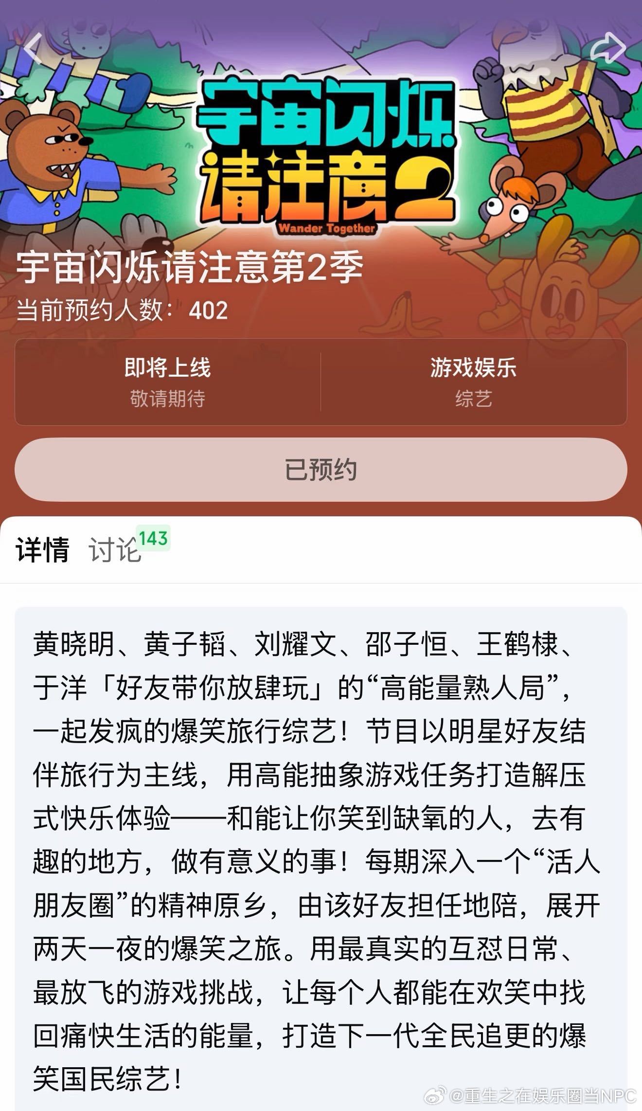 宇宙闪烁请注意2原班人马宇宙闪烁请注意2开启预约了 下季可以去青岛、鹤岗、新疆自驾游,剧组探班喽……宇宙闪烁请注意
