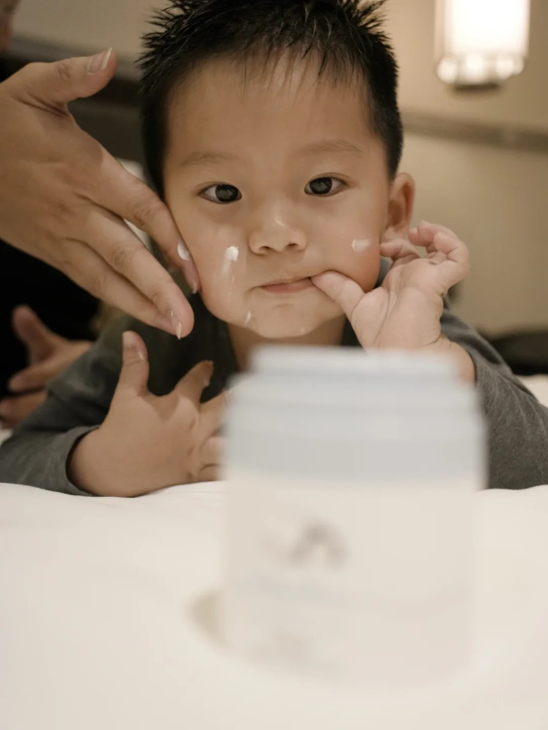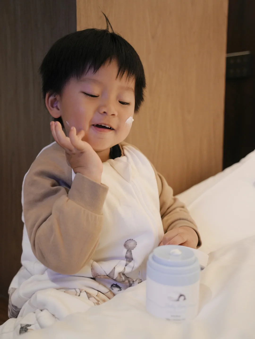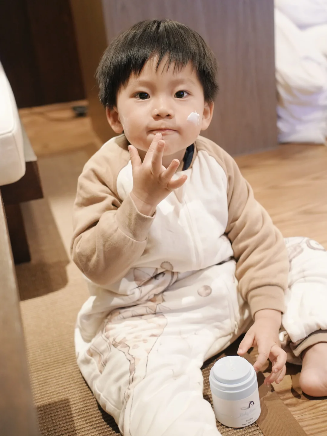 洗完澡出来 雷打不动的亲子护肤环节来啦