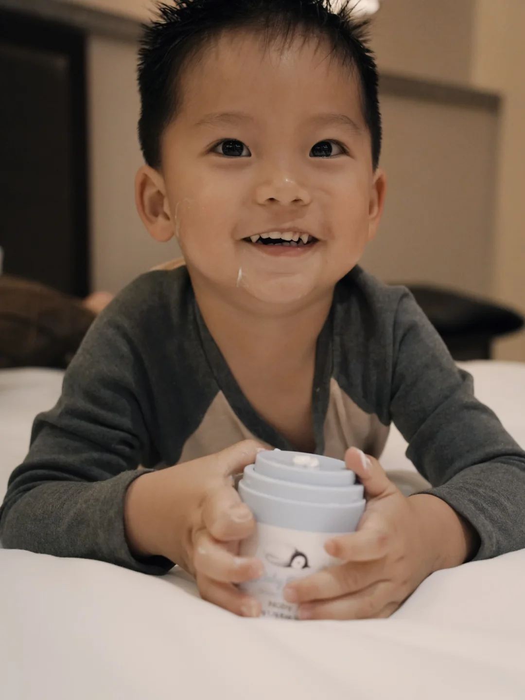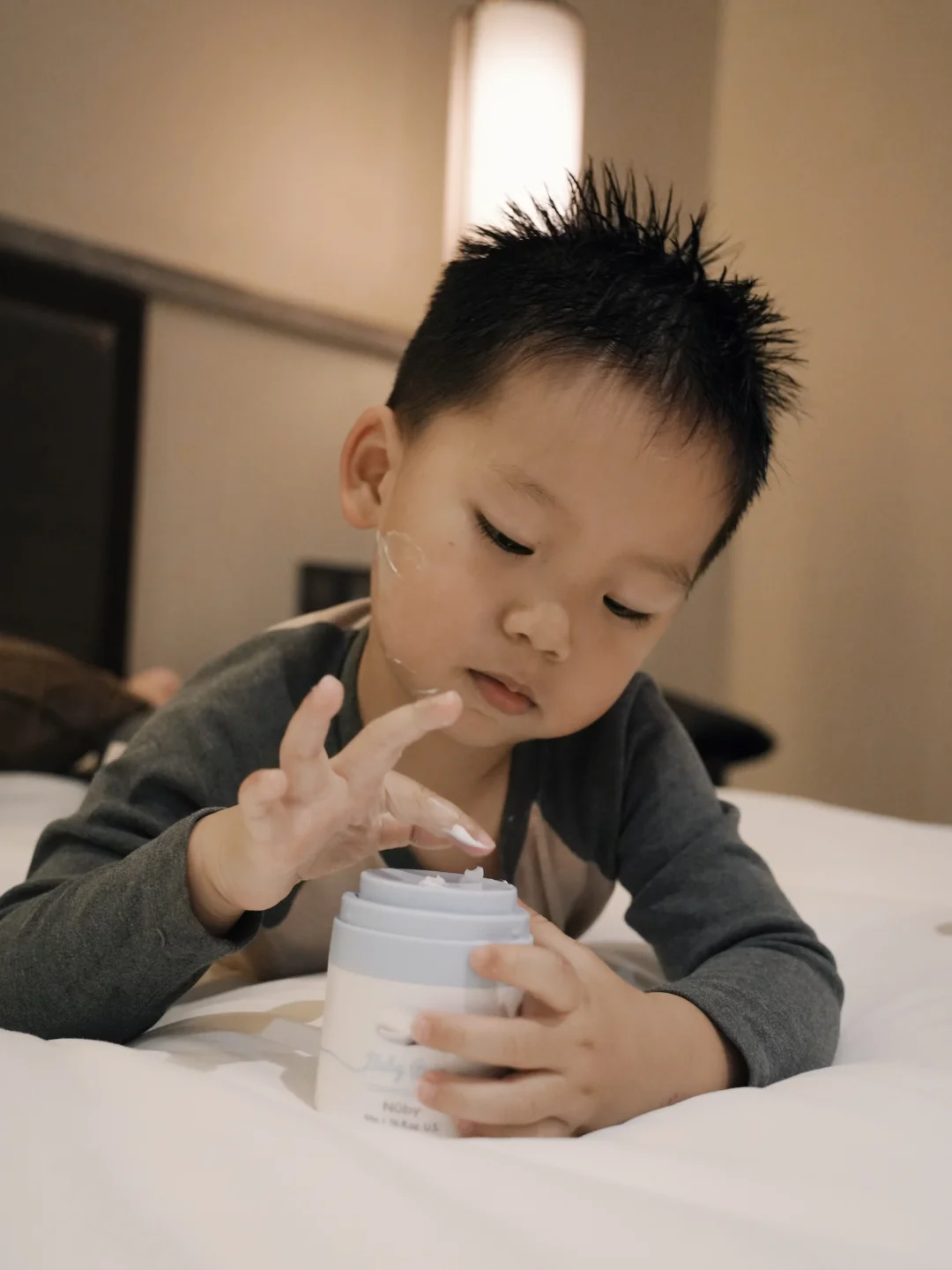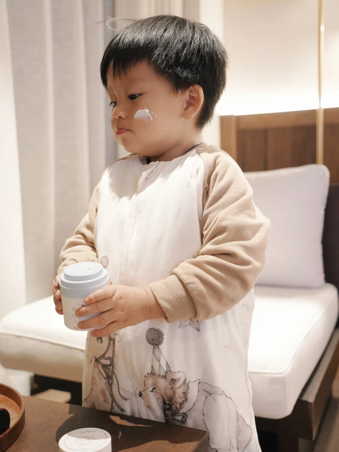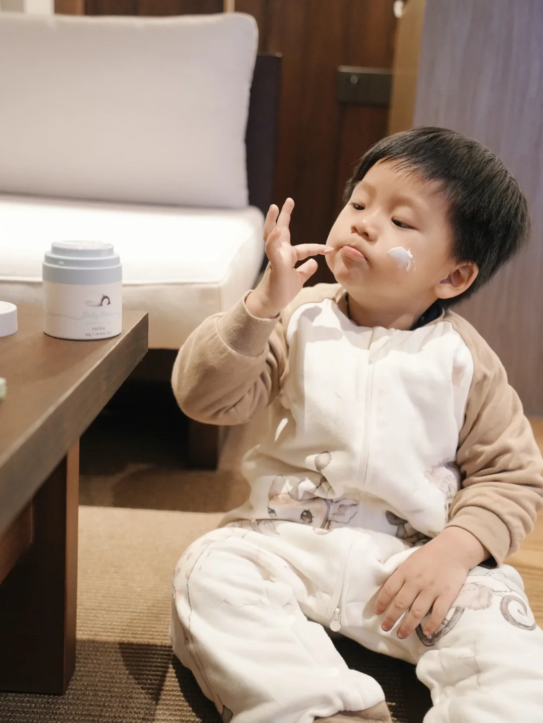 洗完澡出来 雷打不动的亲子护肤环节来啦