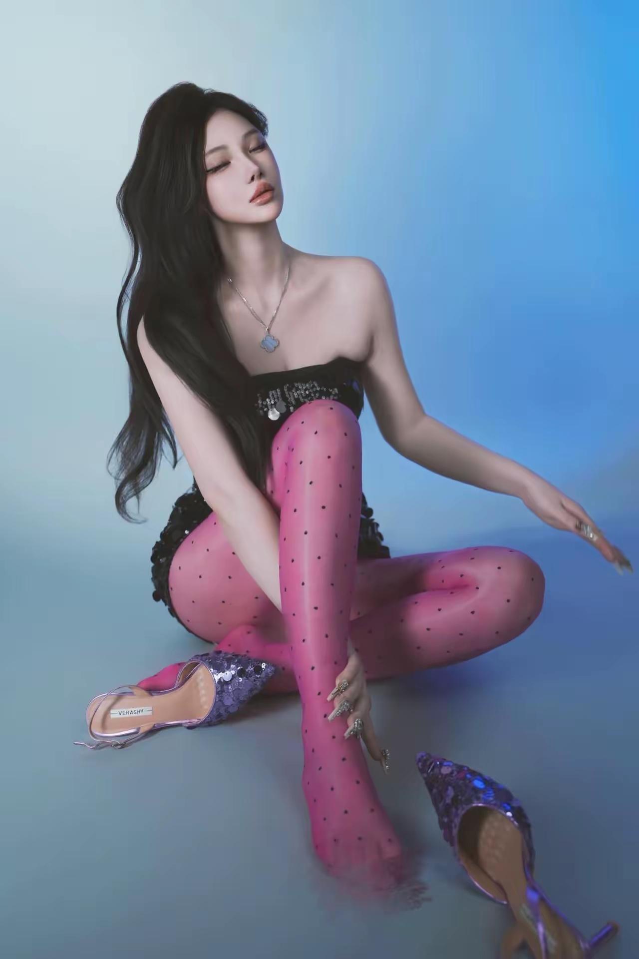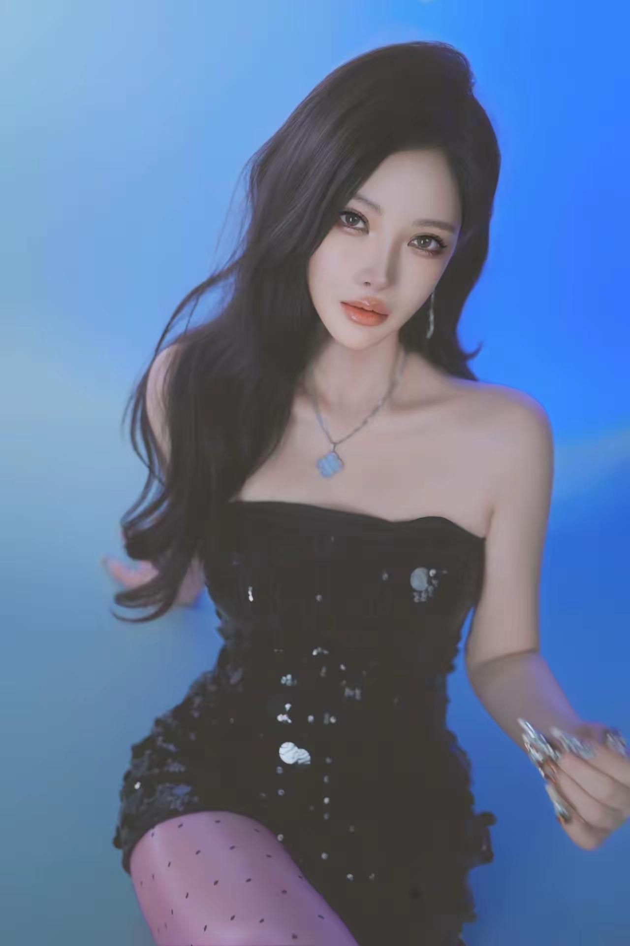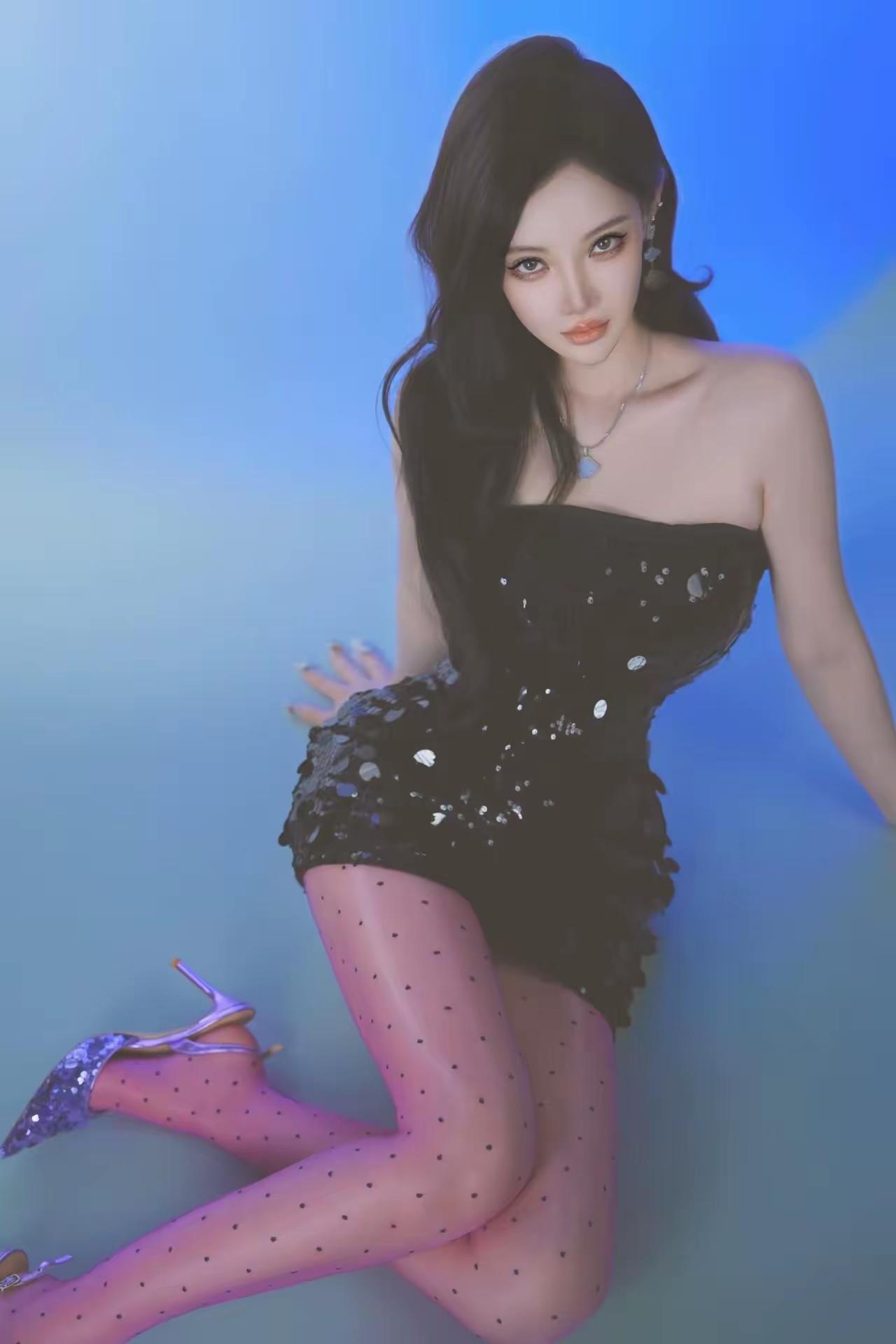 梦幻蓝调,黑裙闪亮,星点闪耀,优雅迷人。