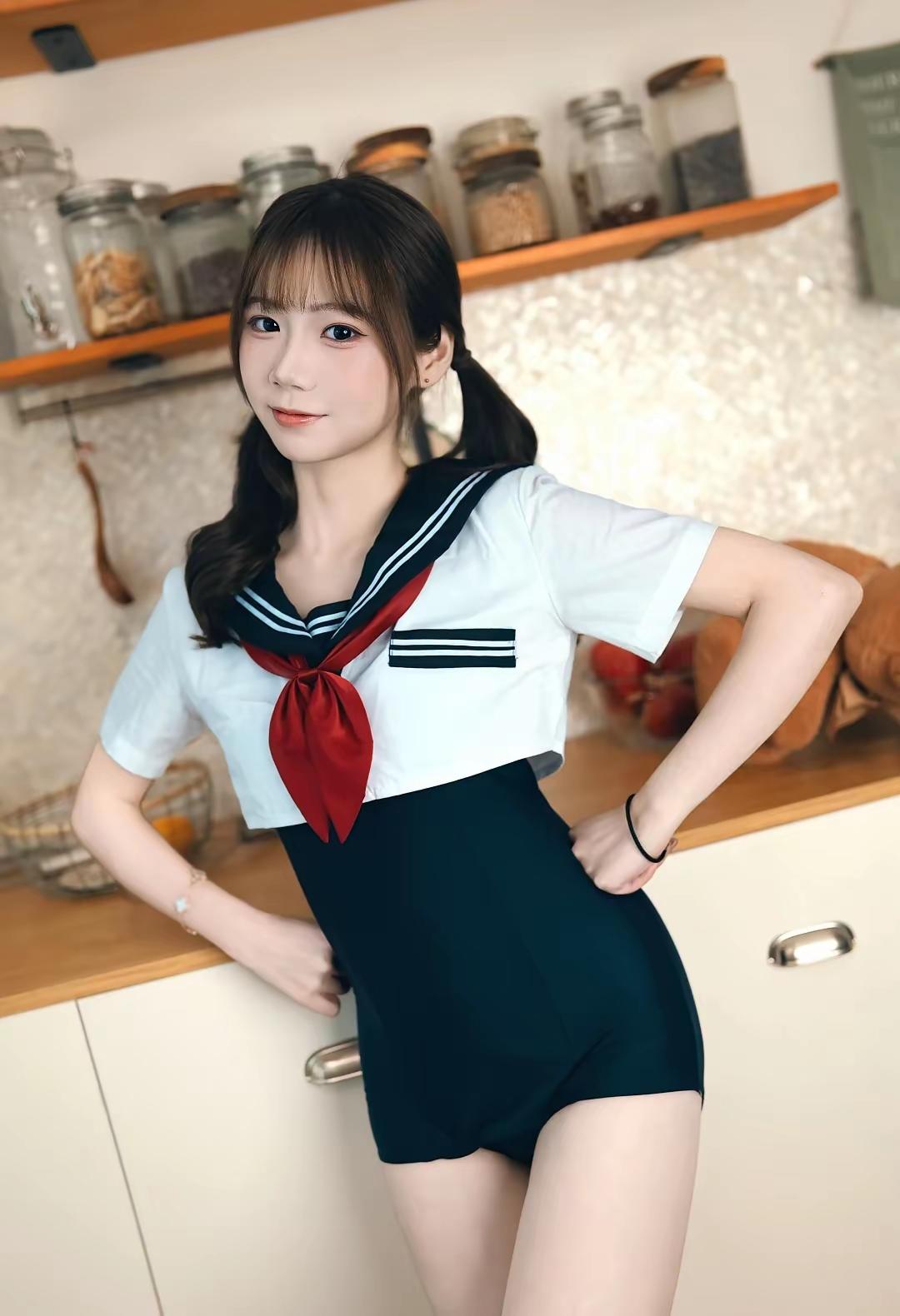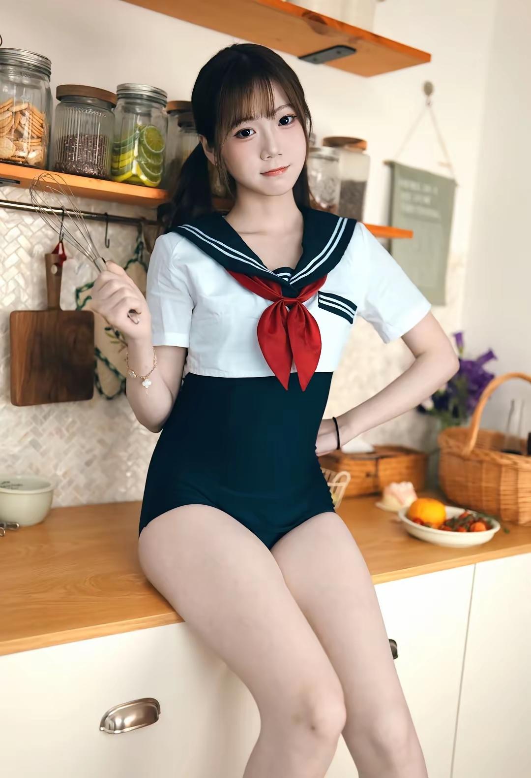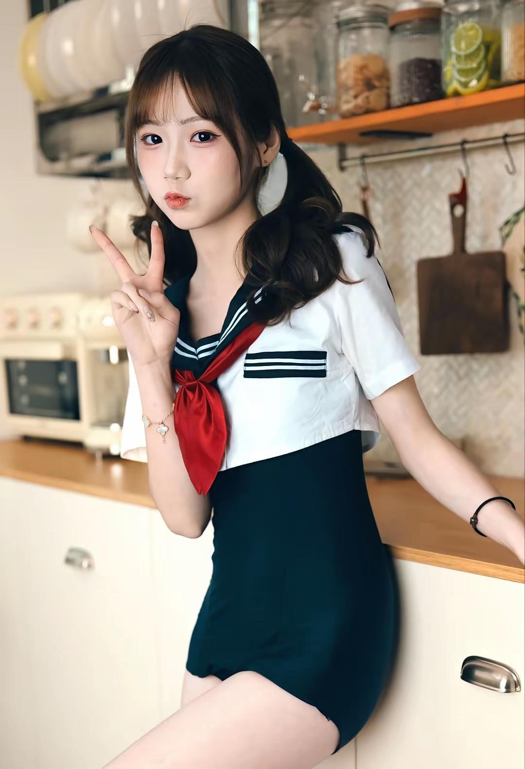 可爱水手服少女在厨房的甜蜜瞬间🍃💕
