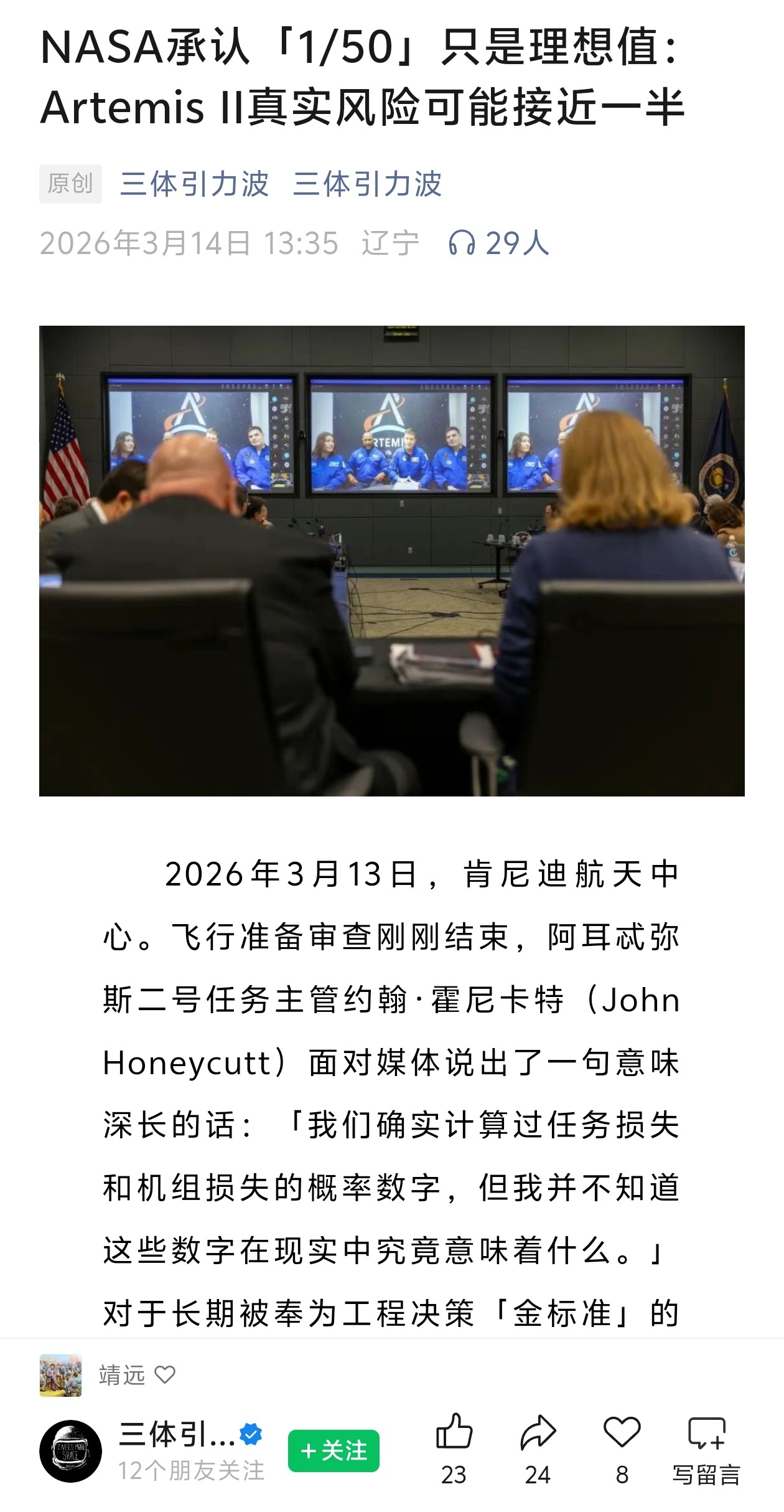 NASA承认「1/50」只是理想值:Artemis II真实风险可能接近一半