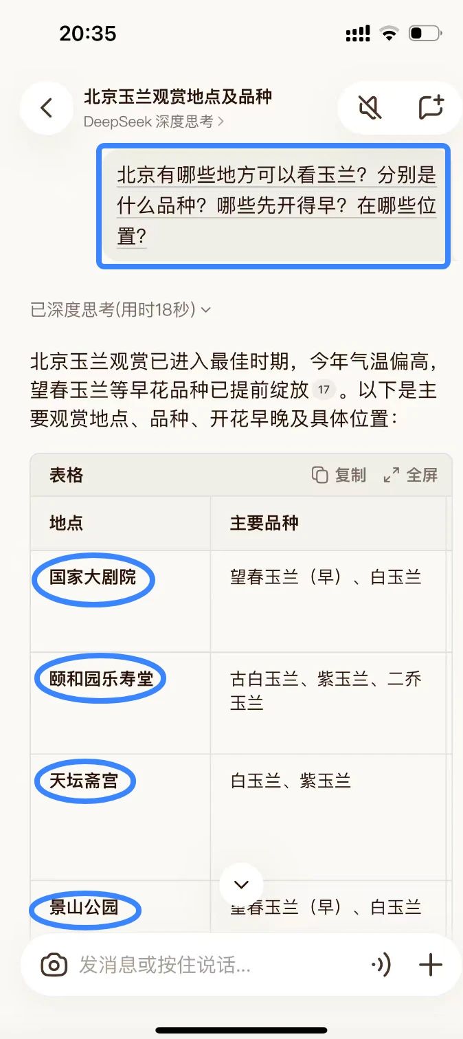 如图9、10,我会问它,北京还有哪些地方可以看到玉兰