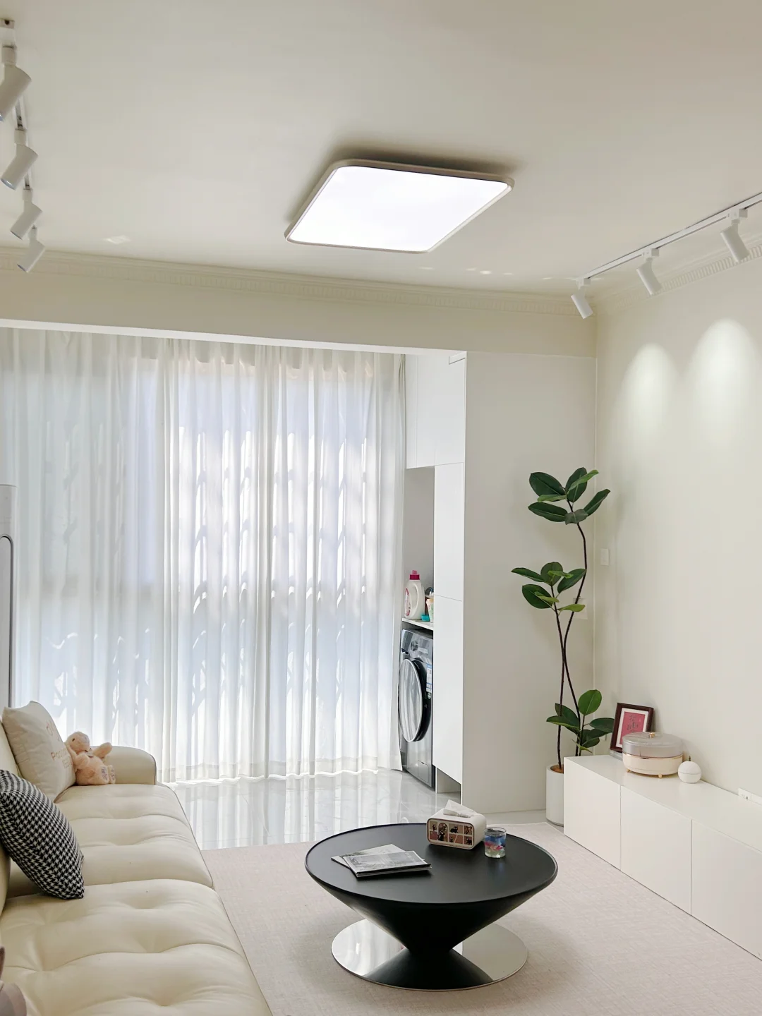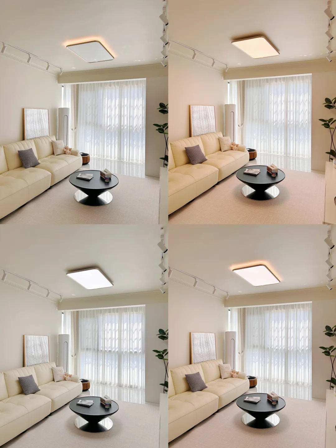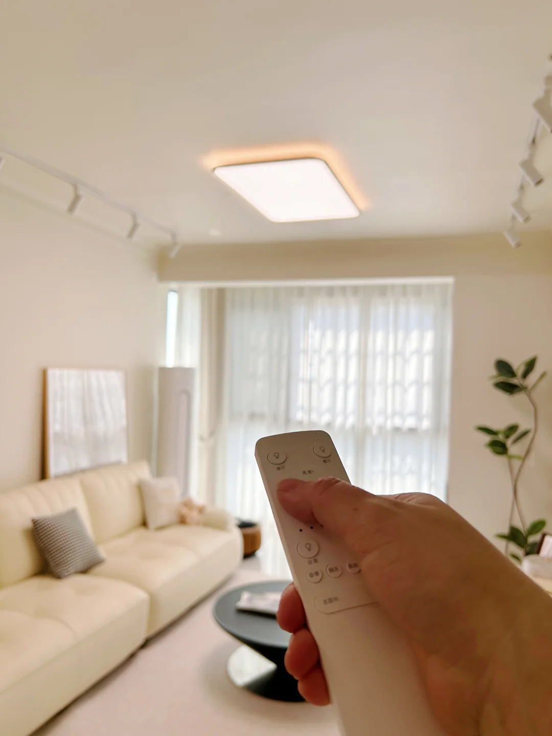 简约的方形设计,奶白色灯体➕一圈暖光氛围边,和我家奶油风客厅完美适配,开灯时光晕漫出来,温柔又高级,完全不像传统吸顶灯那样呆板。