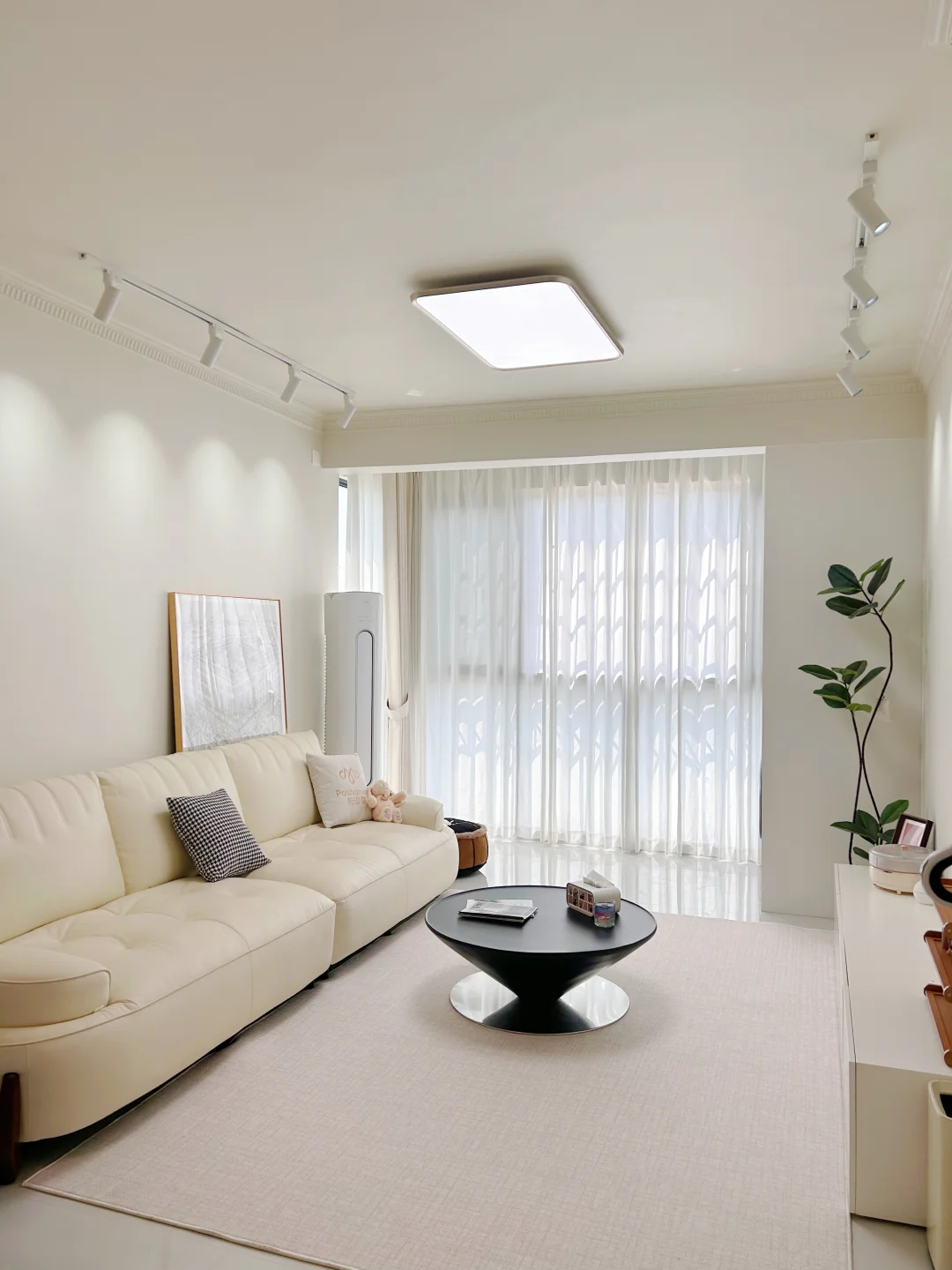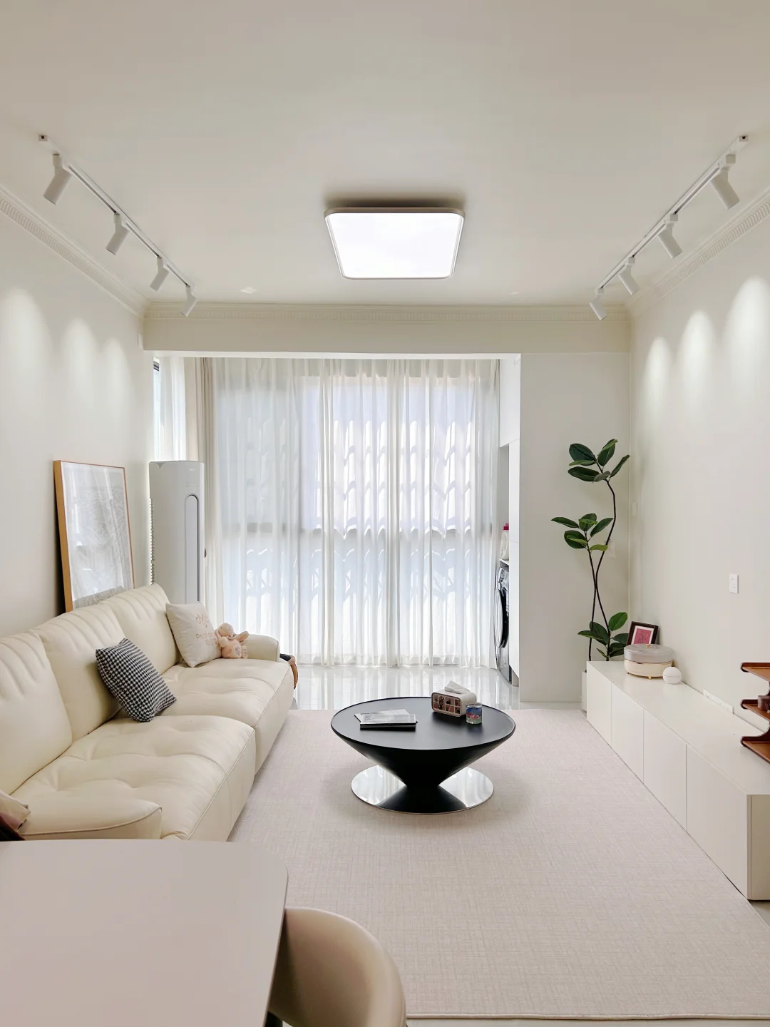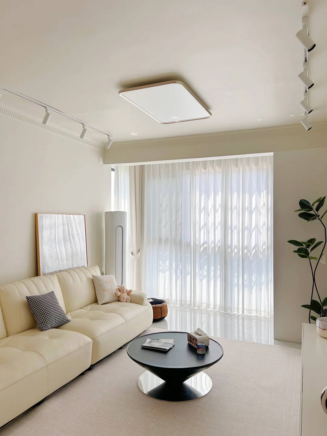 简约的方形设计,奶白色灯体➕一圈暖光氛围边,和我家奶油风客厅完美适配,开灯时光晕漫出来,温柔又高级,完全不像传统吸顶灯那样呆板。