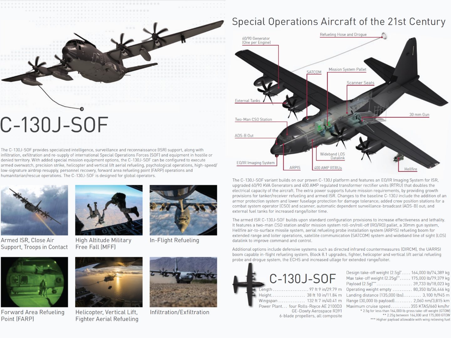 MC-130J Commando II多任务作战运输/特种作战加油机用于取代较老的MC-130N/P Combat Shadow II飞机,MC-130J为AFSOC提供了一种现代化平台,能够在全球范围执行任务,包括: