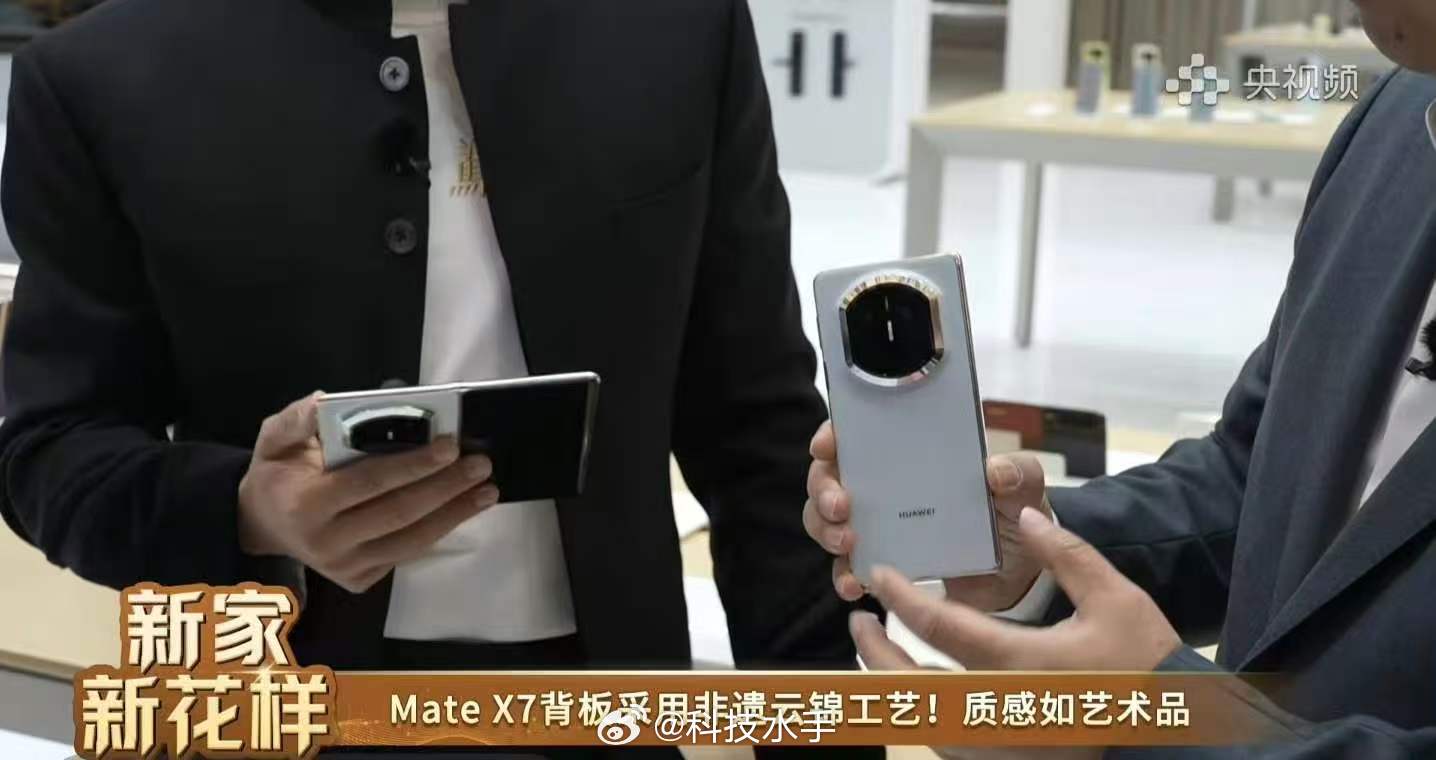 余承东AWE现场解读MateX7新体验 看到余总和尼格买提在AWE现场玩MateX7玩嗨了!居然用这台折叠屏跟全场大合影,展开之后大屏看照片巨爽,分屏操作还能一边看一边修图,商务党狂喜!背板的非遗云锦工艺真的绝,摸起来质感拉满,这哪是手机,明明是把传统文化揣兜里了~