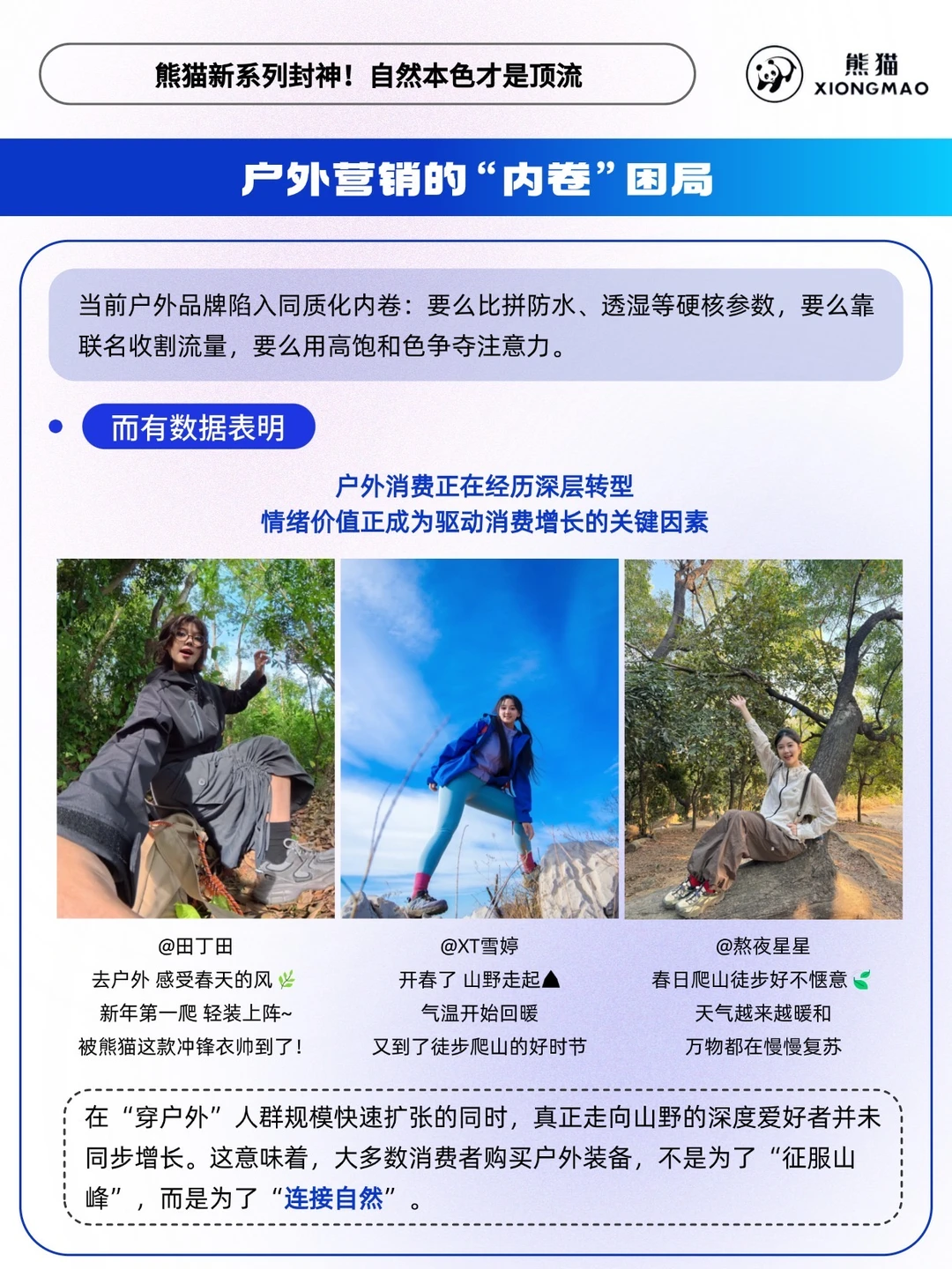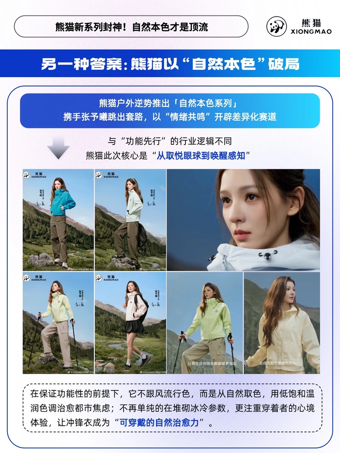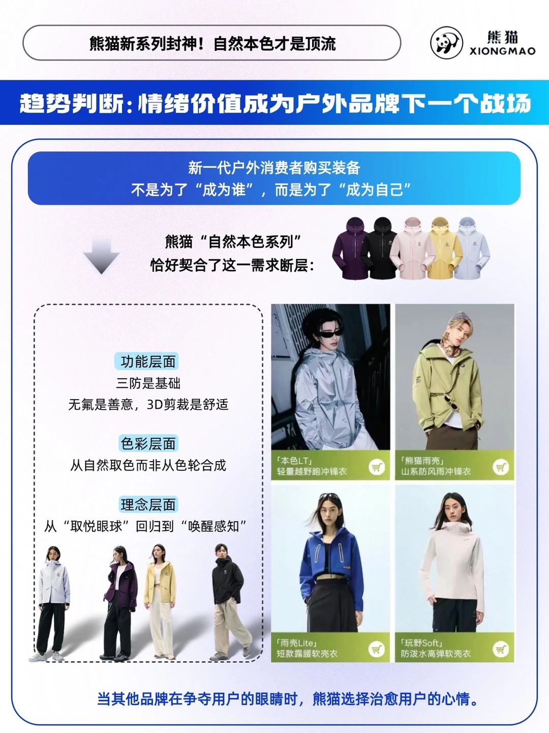 当户外品牌都在卷参数、卷联名、卷高饱和荧光色,熊猫却选择了一条截然不同的路——唤醒感知,回归本真。