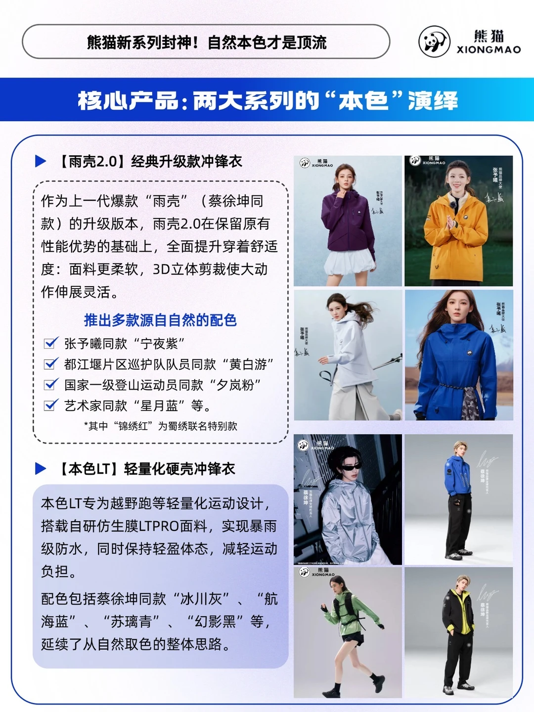 🔵别人在色轮上找流行色,熊猫直接从自然里“取色”;别人用参数堆专业,熊猫在硬核功能之上,更用色彩治愈心情。从雨壳2.0到本色LT,从宁夜紫到黄白游——当一件冲锋衣不仅能防风防雨,还能安放情绪,它就超越了“装备”的范畴🏔️