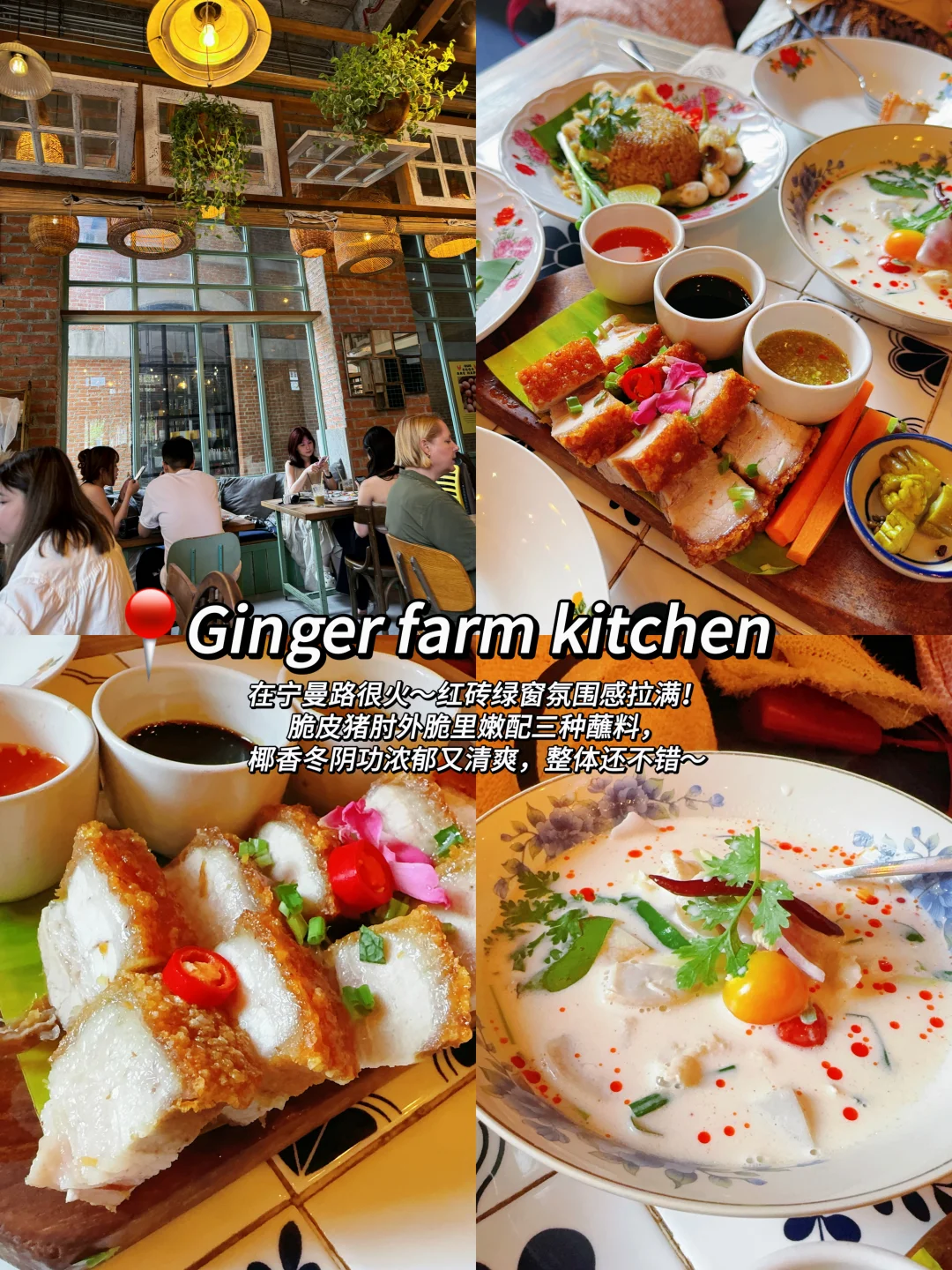 ✅Ginger farm kitchen:脆皮猪肘外脆里嫩,配三种蘸料,椰香冬阴功浓郁又清爽