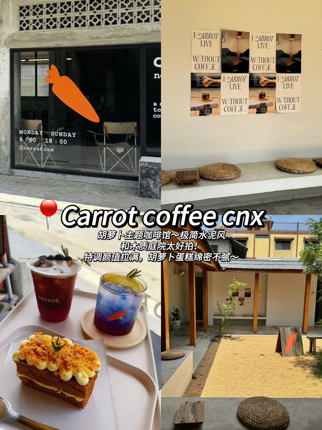 ✅Carrot coffee cnx:胡萝卜主题咖啡馆🥕特调颜值高,胡萝卜蛋糕绵密不腻