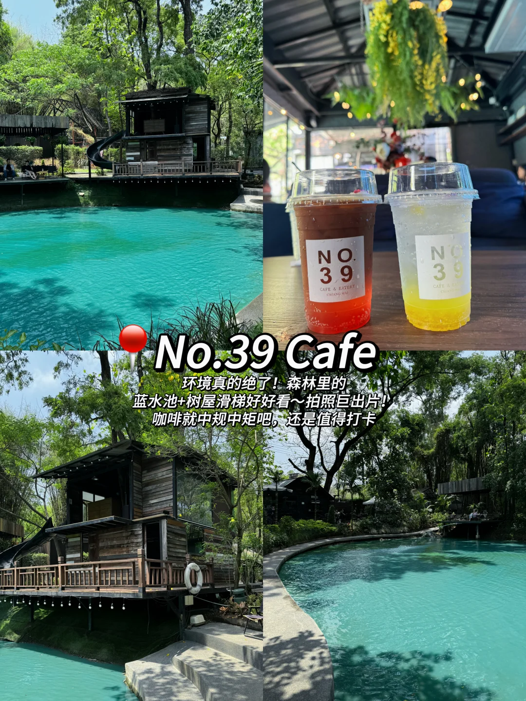 ✅No.39 Cafe:森林里的蓝水池+树屋滑梯超好看🌿拍照很出片!咖啡就中规中矩