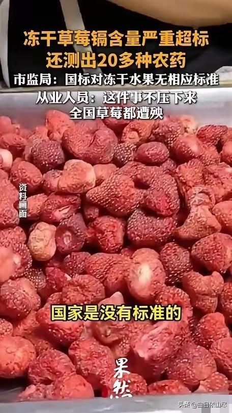 福建漳州一家食品公司负责人林女士爆料自家公司采购的21吨冻干草莓,重金属镉含量0.728mg/kg——是新鲜水果国标的14倍! 更恐怖的是,同一批货还检出了20多种农药残留,里面甚至有国家明令禁用的克百威! 谁也想不到,平时当成健康零食的冻干水果,背后会藏着这么大的安全隐患。 事情发生在福建漳州,当地一家主营食品加工的企业,在日常原料入库验收环节,按照公司内控流程对一批新到的冻干草莓进行抽样送检,原本只是常规操作,却查出了让人震惊的结果。 这批草莓总重量达到21吨,是企业计划用于后续产品生产的核心原料。按照正常流程,原料到厂后需要经过外观、水分、感官等基础检查,再送到专业第三方检测机构做全面安全检测。 企业负责人全程跟进检测进度,原本以为只是走个流程,可当检测报告发回来时,所有人都意识到事情并不简单。 最先引起注意的是重金属镉的含量。检测数据显示,这批冻干草莓的镉含量为0.728mg/kg,而国家针对新鲜水果制定的镉含量限量标准为0.05mg/kg,换算下来,这批原料的镉含量已经达到国家标准的14倍。 镉是一种容易在人体内累积的重金属,不会因为清洗、烘干、高温加工而消失,一旦长期摄入,会悄悄留在身体里,这也是食品检测中重点管控的指标之一。 如果说重金属超标已经足够严重,那么农药残留的检测结果,更是让整件事的危险程度再次升级。 在完整的检测报告中,工作人员一共检出了20多种农药残留,种类覆盖了多种常见农用化合物,更关键的是,其中包含一种国家早已明令禁止使用的农药——克百威。 克百威属于高毒农药,具有内吸性,能够进入植物内部组织,普通冲洗根本无法去除。我国早已明确规定,这类农药不允许在草莓、蔬菜等直接入口的鲜食农产品上使用,目的就是为了避免残留风险。 可在这批21吨的冻干草莓里,禁用农药依然被检测出来,足以说明前端种植和生产环节存在明显的管控缺失。 发现问题后,漳州这家食品企业没有任何隐瞒,也没有选择将原料悄悄流入生产线,而是第一时间对整批21吨冻干草莓进行全面封存,单独划定区域存放,安排专人看管,防止被误用、外流或者擅自处理。 同时,企业内部立刻启动溯源程序,顺着物流、供货方、加工方、种植源头一步步往前查,试图弄清楚问题究竟出在哪一个环节。 从田间种植时的农药使用,到鲜果采收后的筛选,再到冻干加工过程中的干燥处理,最后到仓储运输,每一个节点都被仔细核对。 企业整理好所有检测报告、进货凭证、运输记录、沟通记录等材料,主动向属地监管部门报备情况,配合开展进一步核查工作。 随着事件信息逐步公开,不少关注食品安全的人开始意识到,冻干食品看似干净便携,但其原料安全同样依赖于全链条的严格管理。 冻干工艺会把水果中的水分脱去,在这个过程中,原料本身含有的重金属、农药残留等物质不会消失,反而会因为水分减少出现浓度相对升高的情况,这也让原料端的检测变得更加重要。 目前,相关监管部门已经针对此事开展全面调查,对涉事原料的种植产地、加工工厂、流通渠道进行现场检查,重点核查农药使用记录、原料出厂检测报告、产品合格证明等关键资料,对存在违规行为的环节依法依规处理。 漳州这家企业的自检行为,也意外揭开了冻干果蔬行业里容易被忽视的风险点。很多消费者默认冻干食品是健康、无添加的代表,却很少关注原料在进入加工厂之前,是否经过了严格的安全检测。 而对于食品生产企业来说,原料验收就是守住安全的第一道关口,一旦放松,就可能让不合格产品流向市场。 整件事没有复杂的情节,却真实反映出食品安全链条上每一个细节的重要性。从田间到工厂,从工厂到货架,任何一个环节的松懈,都可能让不合格原料蒙混过关。 21吨问题冻干草莓虽然被及时拦下,没有进入生产和销售环节,但它带来的提醒却十分清晰:食品安全没有侥幸,每一批次、每一种原料,都值得最严格的把关。 消费者在选购冻干水果、果干、烘焙原料等食品时,也更应该关注产品是否具备完整的检测报告和合格证明,选择来源清晰、检测齐全的产品,才能真正吃得安心。 对此,你们有什么看法,欢迎评论留言~
