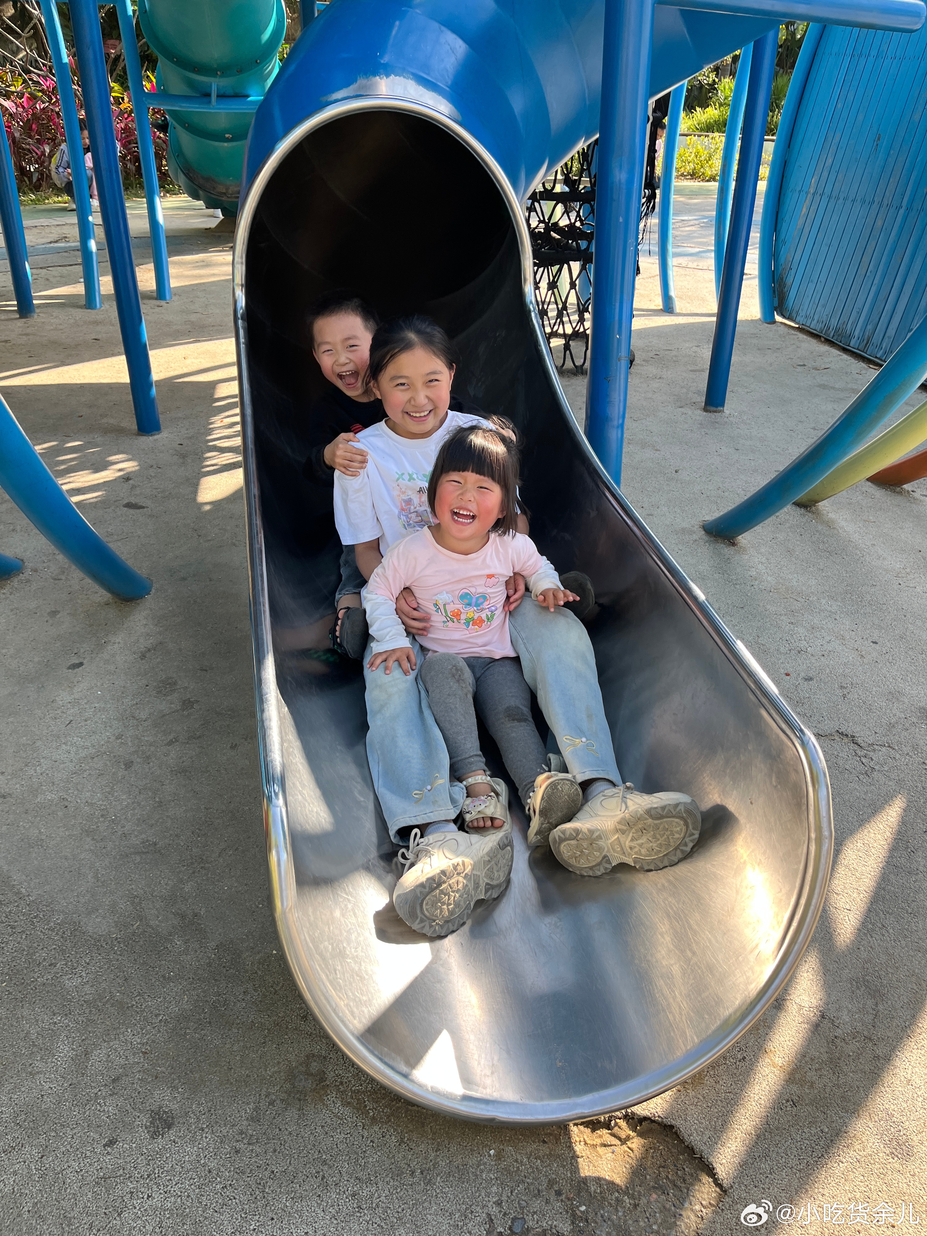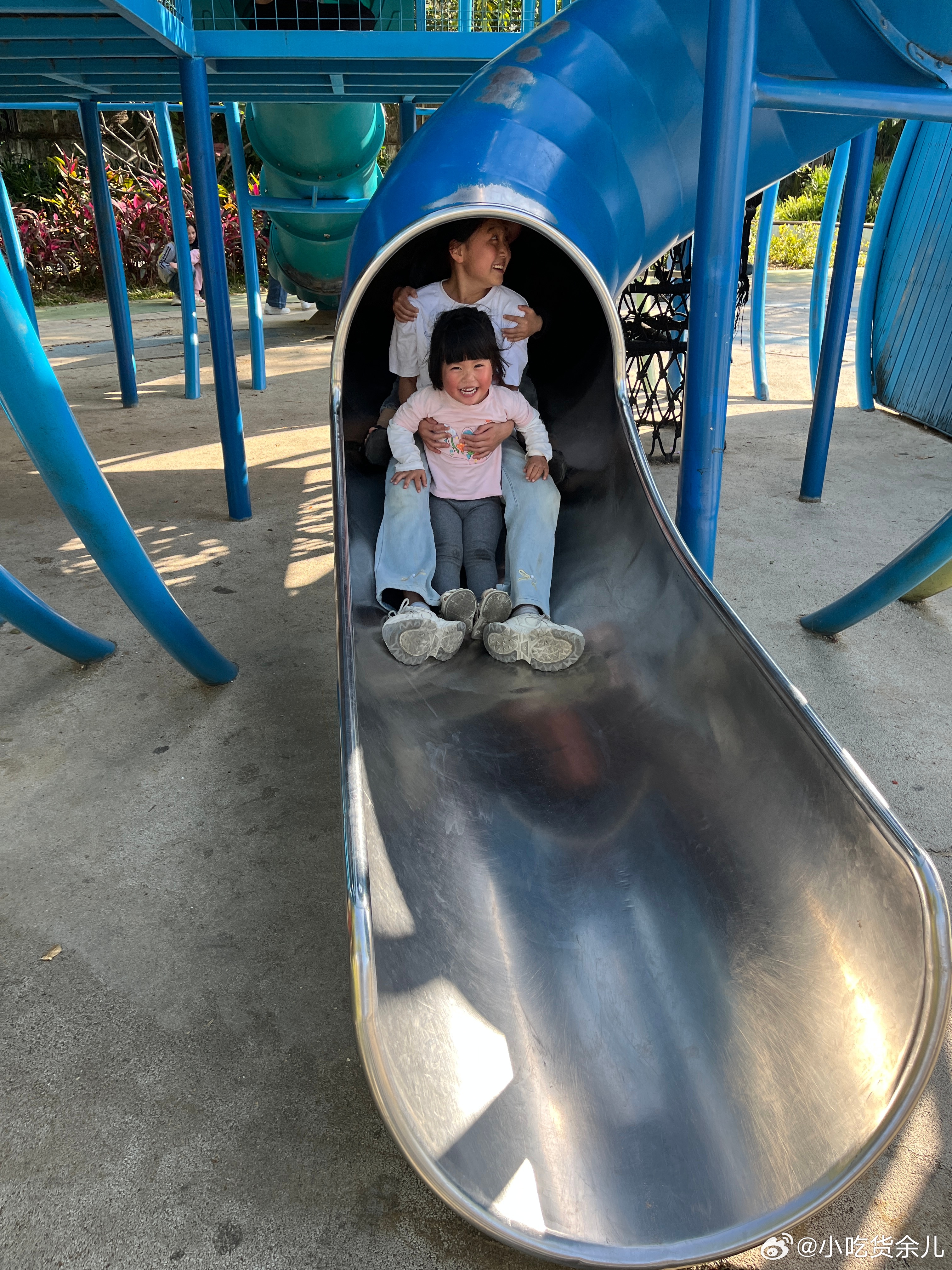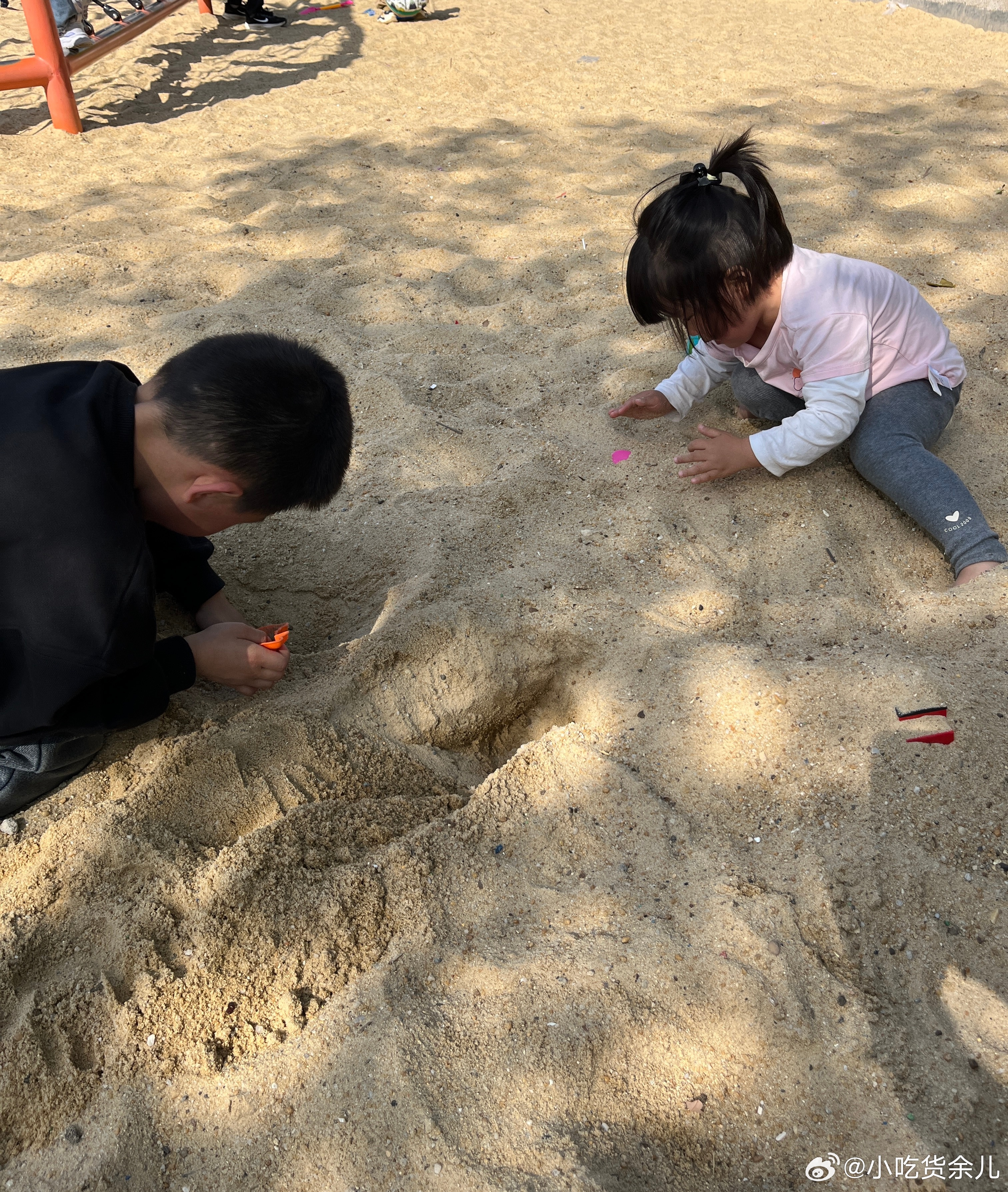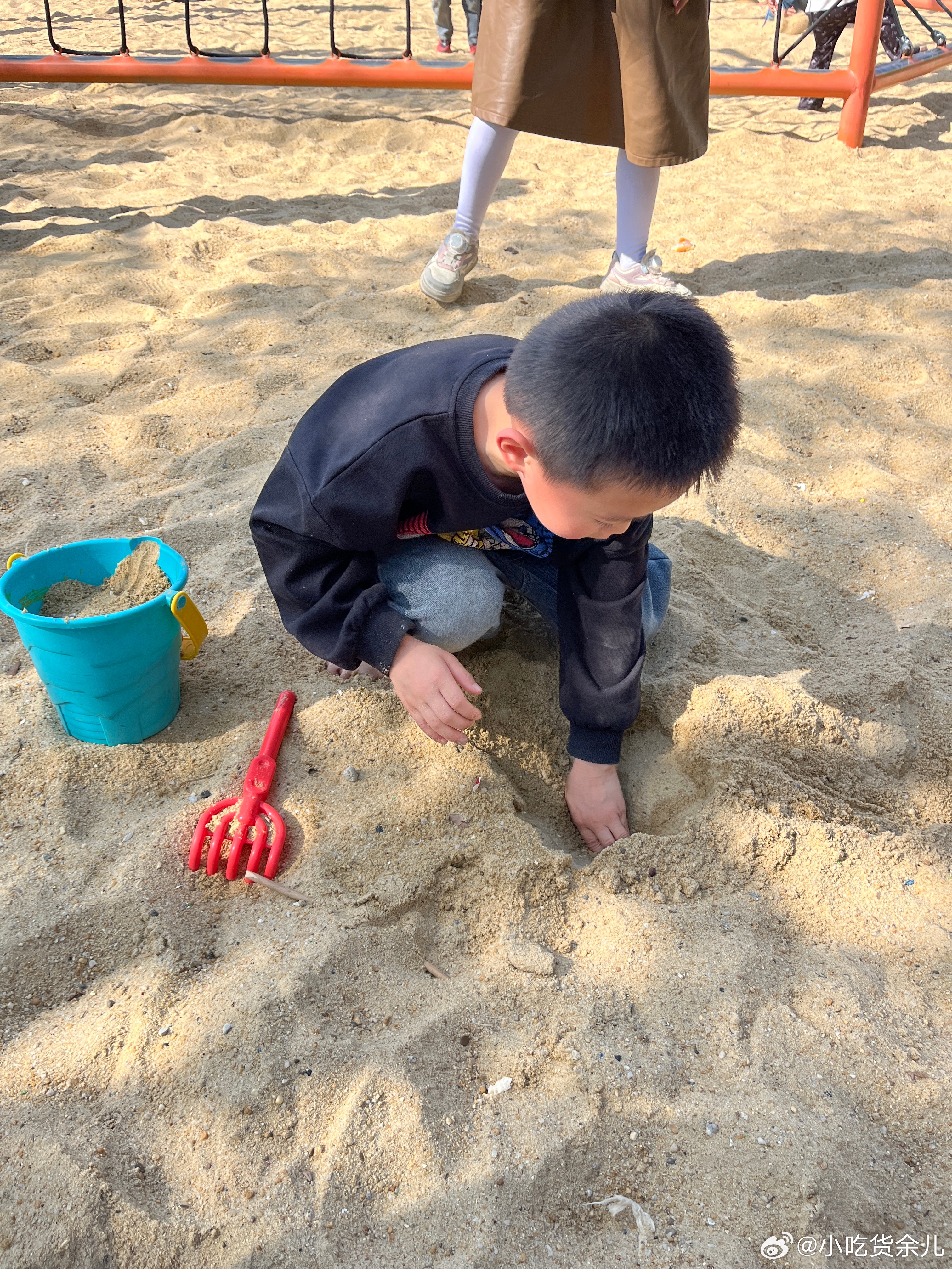 野餐完了,来玩沙子和滑滑梯。怎么男孩子也那么爱生气,有吃有玩还不行,还要哄。重要