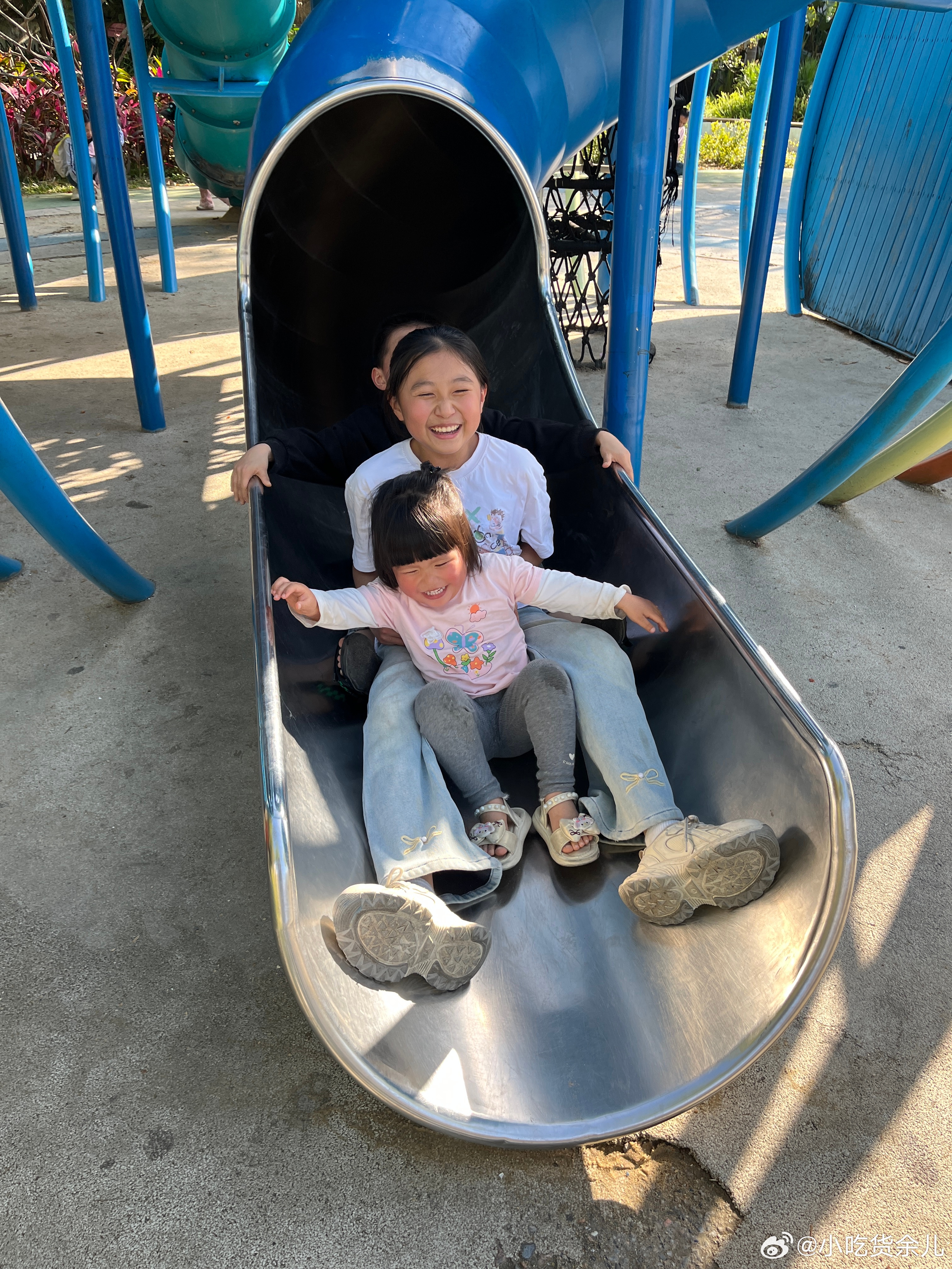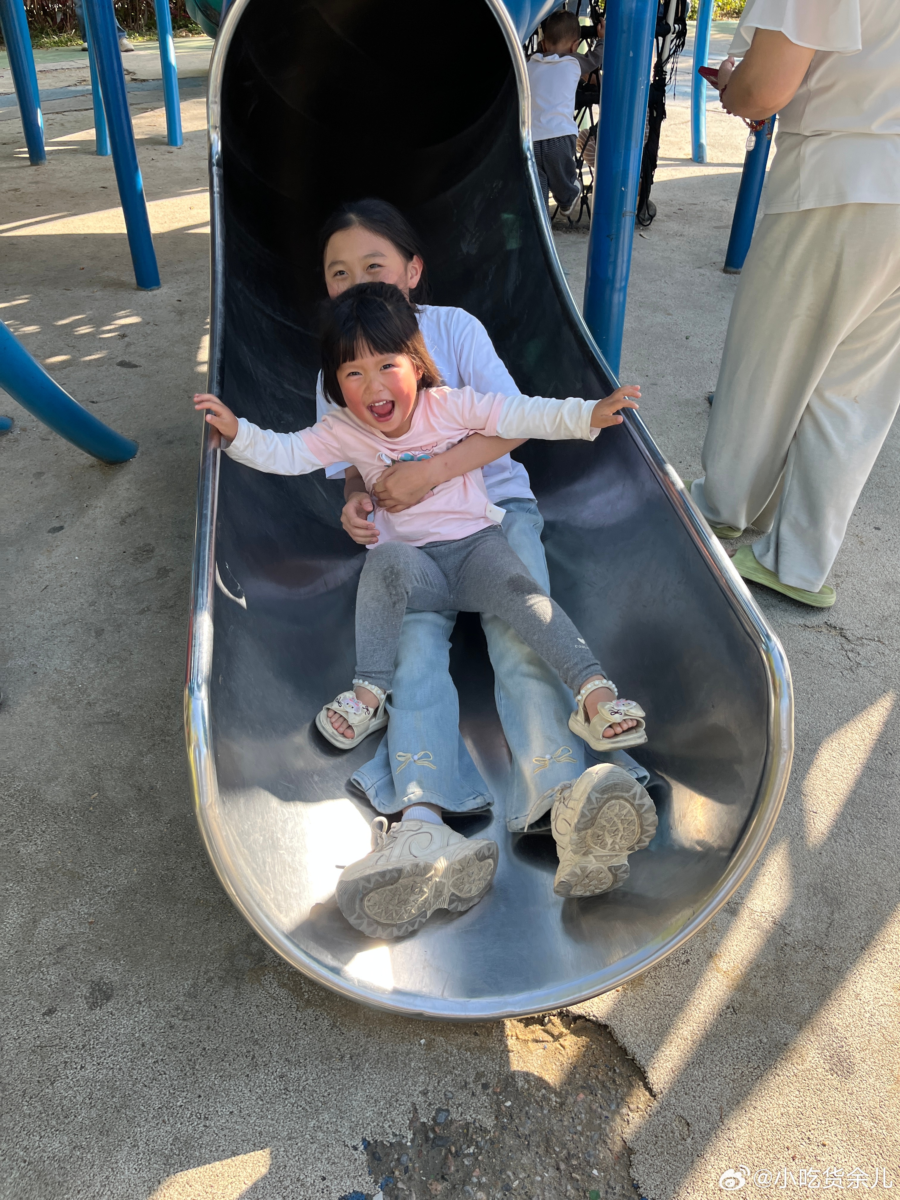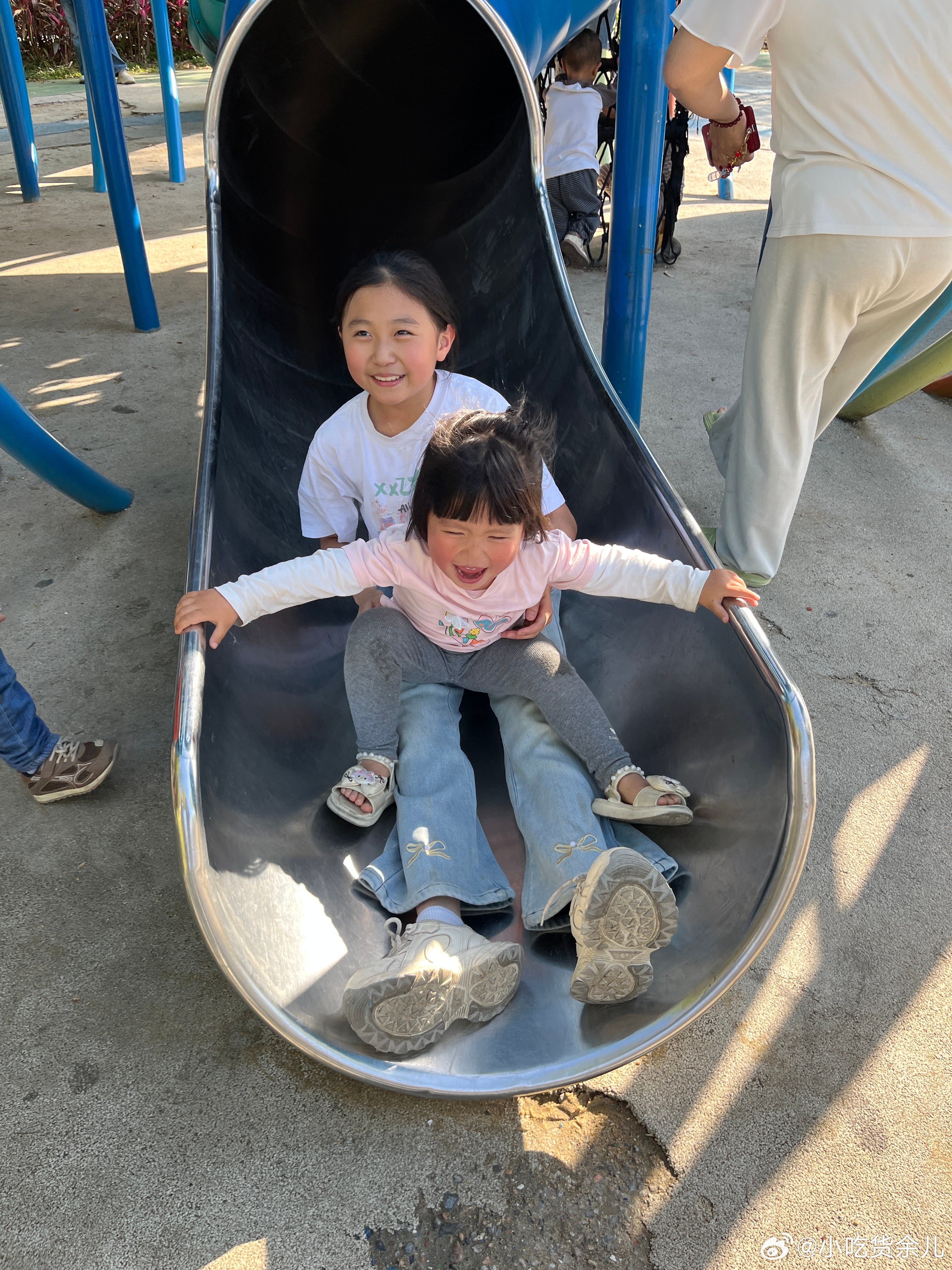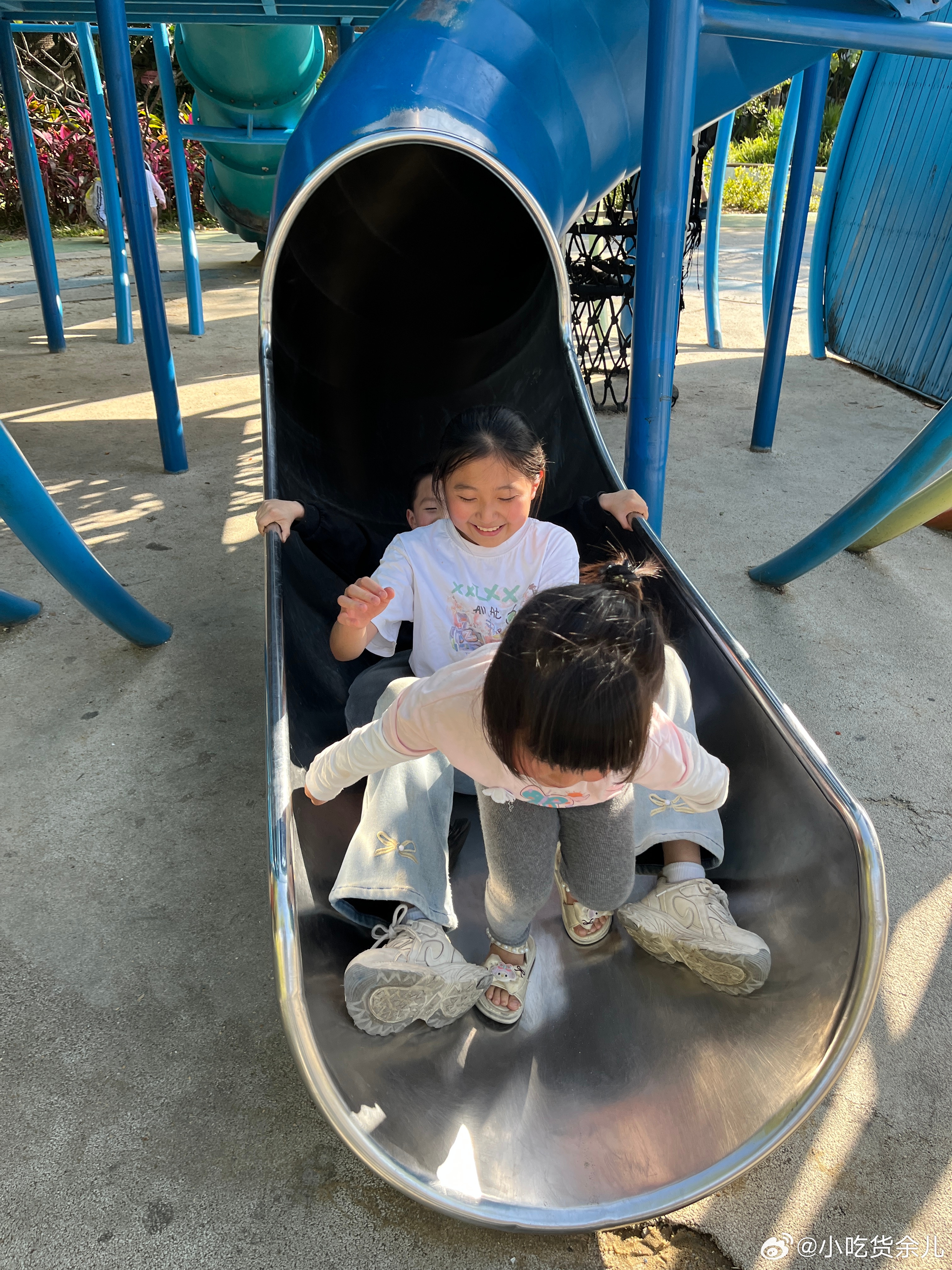 野餐完了,来玩沙子和滑滑梯。怎么男孩子也那么爱生气,有吃有玩还不行,还要哄。重要