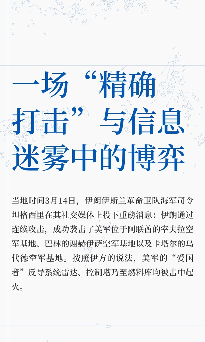 伊朗称袭击美军中东三大军事基地|美伊以冲突 当地时间3月14日,伊朗伊斯兰革命卫