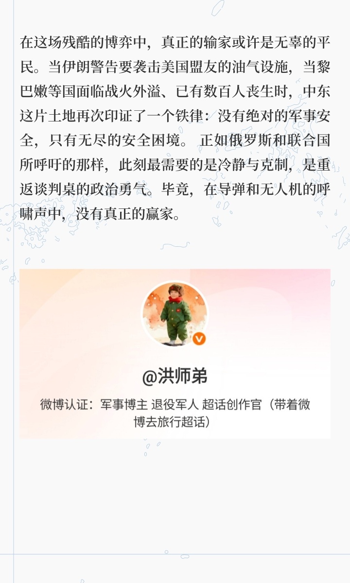 在这场残酷的博弈中,真正的输家或许是无辜的平民。当伊朗警告要袭击美国盟友的油气设施,当黎巴嫩等国面临战火外溢、已有数百人丧生时,中东这片土地再次印证了一个铁律:没有绝对的军事安全,只有无尽的安全困境。 正如俄罗斯和联合国所呼吁的那样,此刻最需要的是冷静与克制,是重返谈判桌的政治勇气。毕竟,在导弹和无人机的呼啸声中,没有真正的赢家。国际局势 伊朗称袭击美军中东三大军事基地