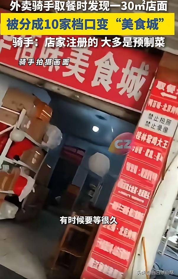 万万没想到!广西桂林,一位外卖骑手到店里面取餐,结果一开门直接看懵了,一家30㎡的店面,硬是被改造出10家档口,关键老板还是同一个人,有网友质疑这是怎么做到的,骑手表示,注册个“美食城”就可以! 外卖骑手日常穿梭在各类餐饮门店取餐,见过拥挤的后厨,也见过狭小的铺面,可广西桂林一位骑手推开一家店铺门时,还是被眼前的景象惊到。 30平方米的空间被精细分割,形成10个独立档口,每个档口对应线上不同的外卖店铺,所有档口的实际经营者都是同一人。 骑手按照订单信息抵达取餐地址,门头与普通外卖店铺并无差异,推门进入后才发现内部布局格外特殊。 整个店面没有多余的公共区域,墙面与隔断将空间切分成均等的小区域,每个区域设有独立的出餐口与标识,远远看去像是多家小店聚集在一起。 店内动线十分紧凑,工作人员在各个档口之间往返操作,高峰期时取餐骑手需要逐一核对档口编号,才能找到对应订单的出餐位置。 这样的空间利用方式在当地外卖圈并不常见,30平方米分摊到10个档口,单个区域面积十分有限,仅能满足基础的出餐与存放需求。 店内没有设置堂食座位,所有产出全部对接线上订单,不同档口覆盖不同品类,从主食到小吃一应俱全,消费者在平台上看到的多家独立店铺,实际都出自这个狭小空间。 不少网友看到现场情况后提出疑问,单一店铺如何实现多店铺线上运营,骑手在日常取餐过程中了解到背后的操作模式。 经营者将店铺主体注册为美食城类型,依托集中经营的资质形式,在同一物理空间内开设多个线上端口,以此实现一店多铺的运营形态。 这种模式能在固定租金成本下,覆盖更多线上品类与流量入口,提升订单承接能力。 店内的操作流程高度集约化,食材储备、加工设备、打包物料在有限空间内统筹摆放,不同档口的餐品制作同步进行。 部分餐品依靠预制食材快速加热出餐,少数需要现场制作的品类则在专属区域完成,整体出餐流程围绕效率展开,以适配多店铺同时接单的需求。 骑手取餐时能明显感受到,狭小空间内同时运转多个订单,现场节奏紧凑,人员与设备的排布都经过精细化安排。 这件事在网络上传播后,引发不少对外卖店铺运营形态的关注。普通消费者点外卖时,通常通过店铺名称、品类与评分选择商家,很难察觉线上多家店铺可能共用同一经营场所。 30平方米空间承载10个档口运营,既体现出小成本外卖经营的创新思路,也让空间布局、操作规范、食材管理等细节成为外界关注的焦点。 从实体空间改造到线上店铺注册,再到日常出餐与取餐流转,这家小店形成了一套完整的闭环运营模式。 骑手的偶然发现,让这种小众运营方式浮出水面,也让更多人看到外卖行业背后多样化的经营形态。 没有夸张的宣传,没有复杂的包装,仅凭空间改造与资质注册,就实现了多店铺并行运营,在桂林当地的外卖行业里形成了独特的存在。 对此,你们有什么看法,欢迎评论留言~